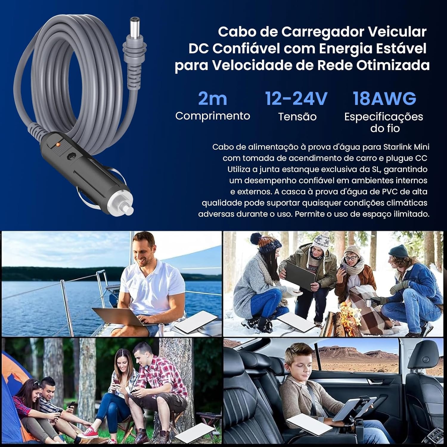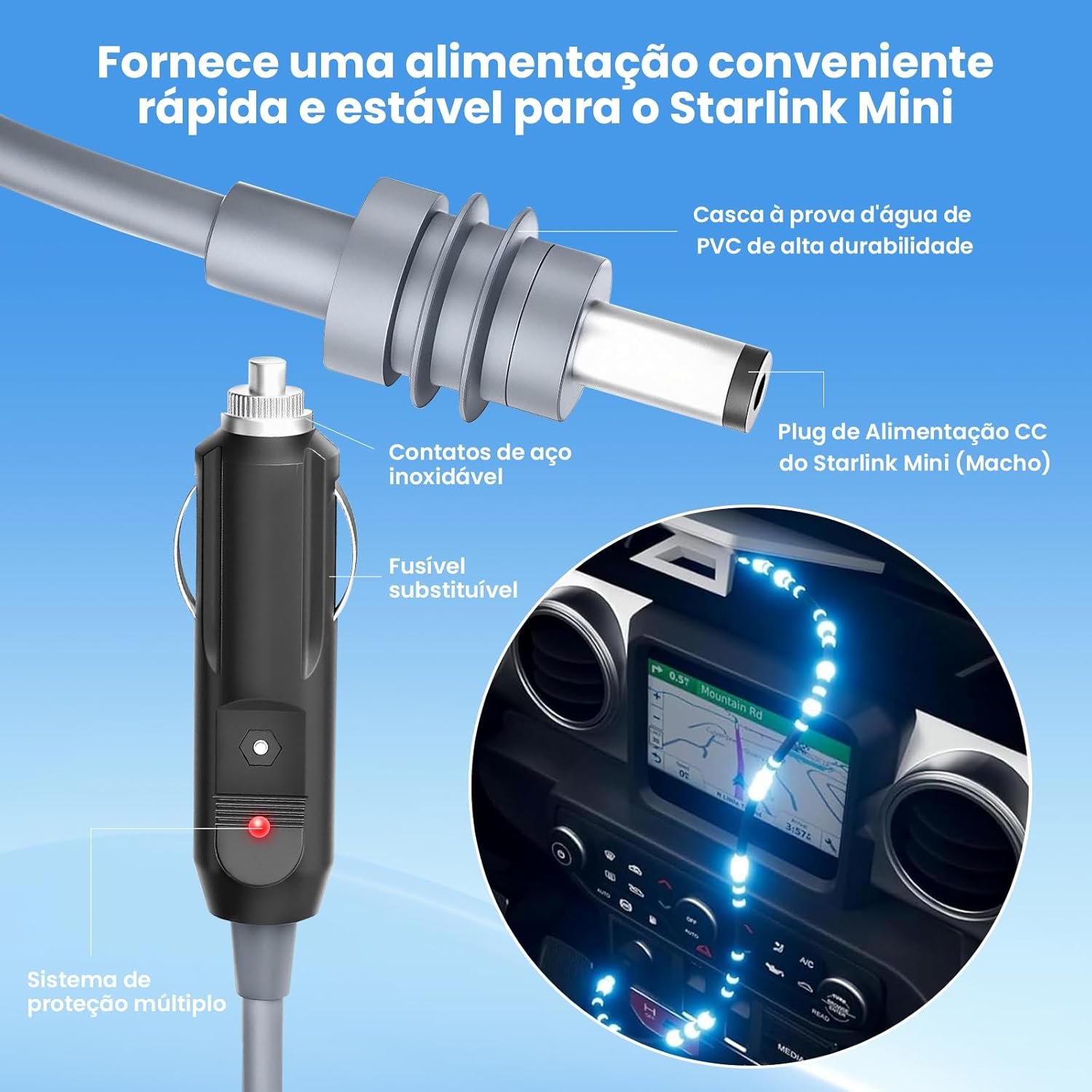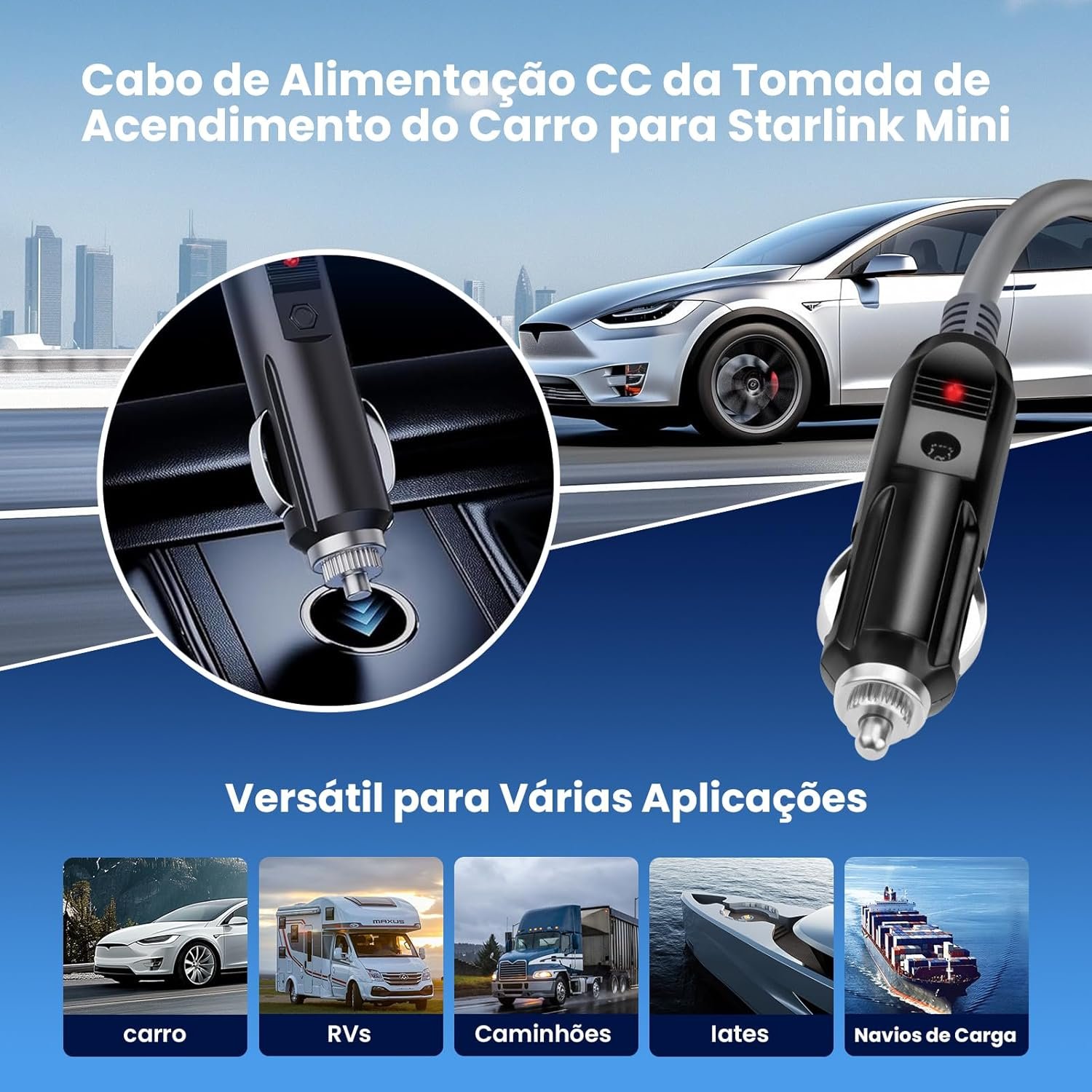 Cabo Carregador S tarlink Mini USB-C Plug DC e Isqueiro Veicular 12V 24V Fonte Powerbank Celular Roteador Internet Satélite Cabo Portátil 2MCabo Carregador S tarlink Mini USB-C Plug DC e Isqueiro Veicular 12V 24V Fonte Powerbank Celular Roteador Internet Satélite Cabo Portátil 2M