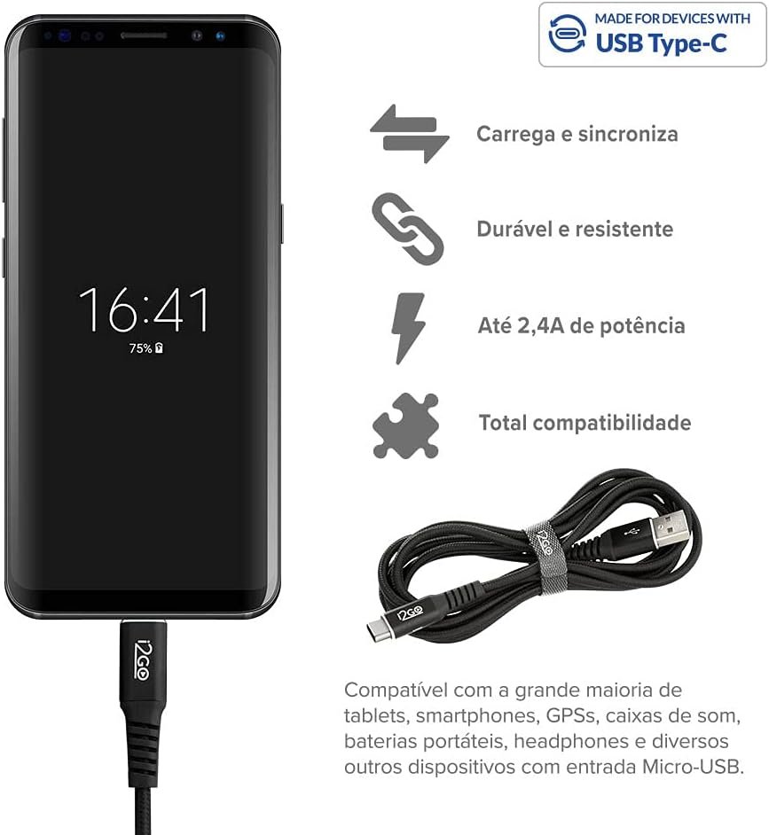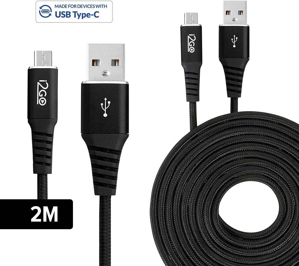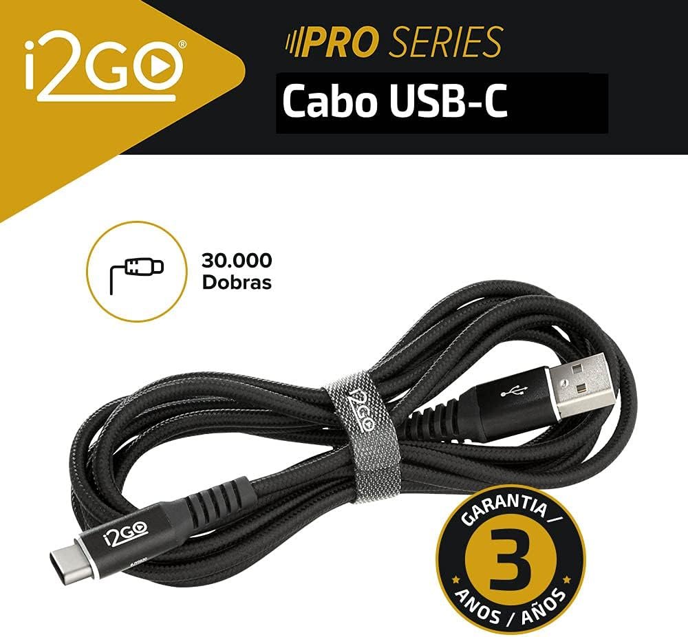 Cabo USB-C I2GO 2m 3A Nylon Trançado Preto – I2GO PRO