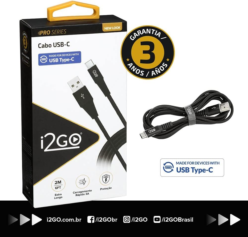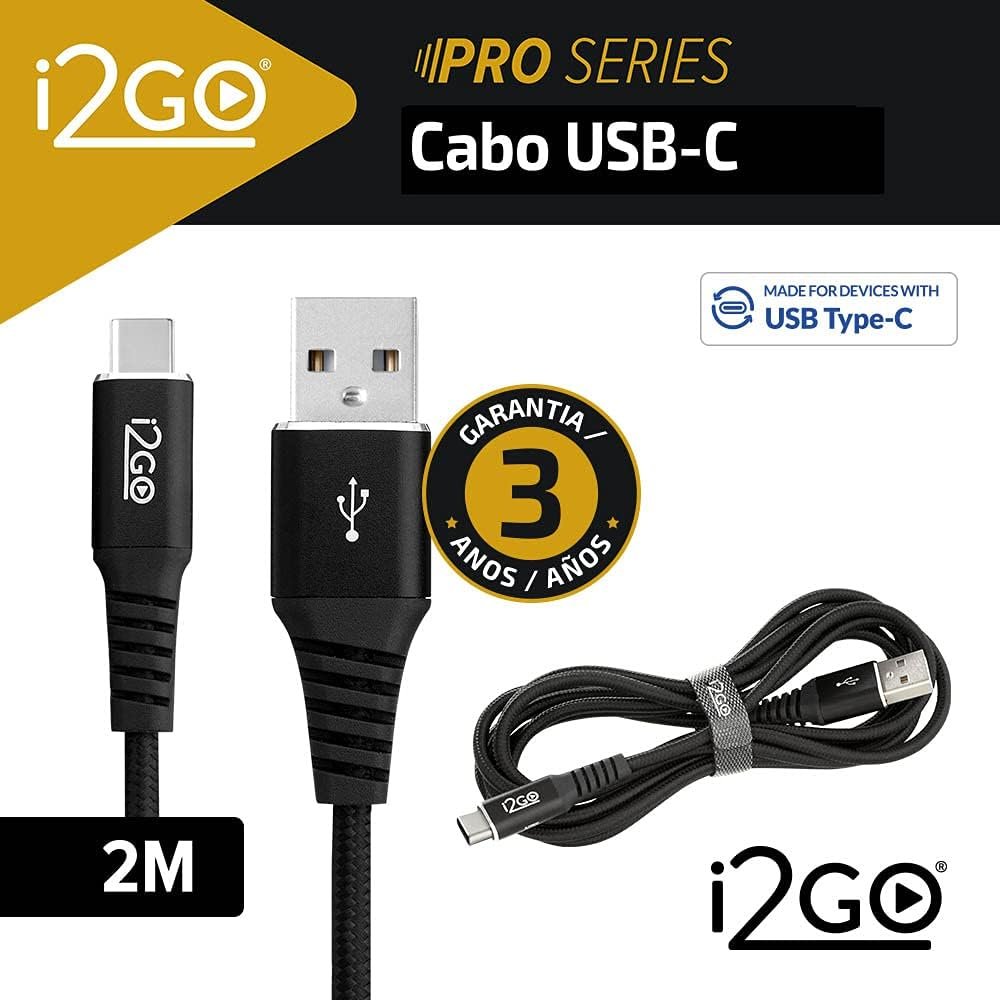 Cabo USB-C I2GO 2m 3A Nylon Trançado Preto – I2GO PROCabo USB-C I2GO 2m 3A Nylon Trançado Preto – I2GO PRO