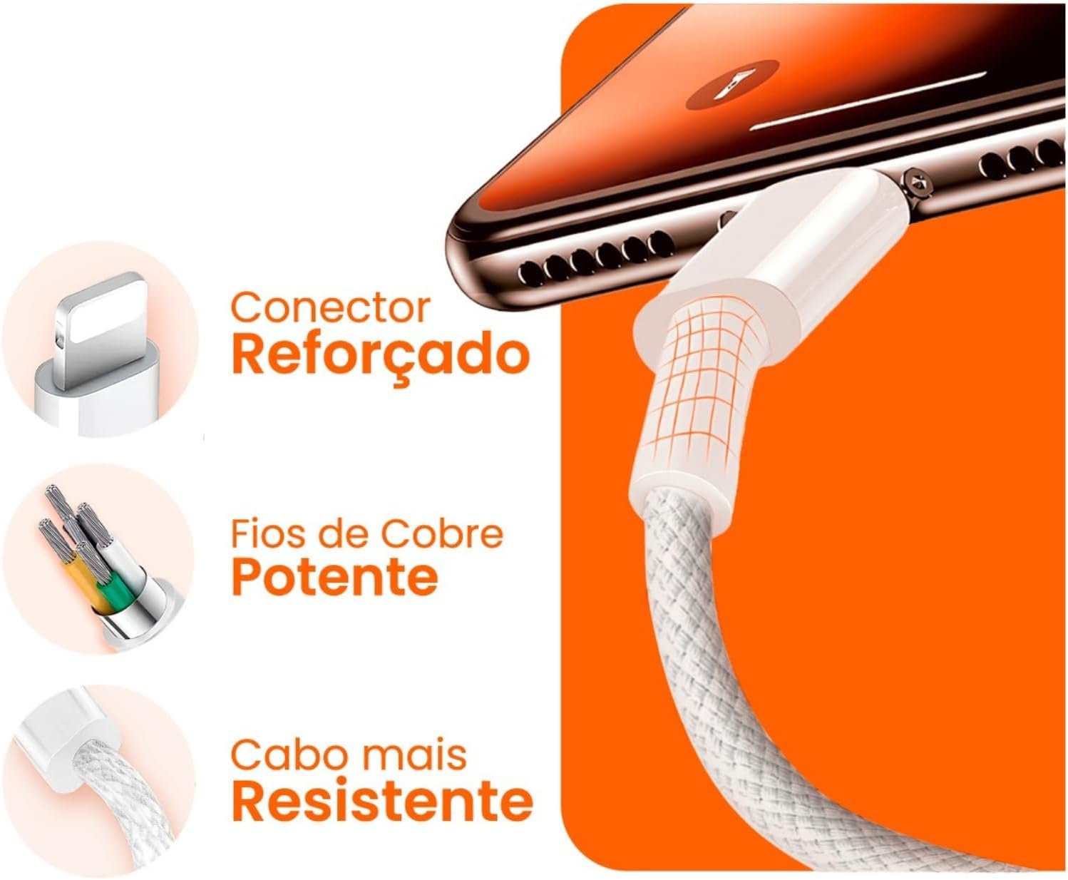 Cabo USB para Lightning Reforçado 1M, Compatível com iPhone 6 7 8 X Xs 11 Se 12 Xr 13 14 Pro Max – Carregamento Turbo e Transferência de Dados