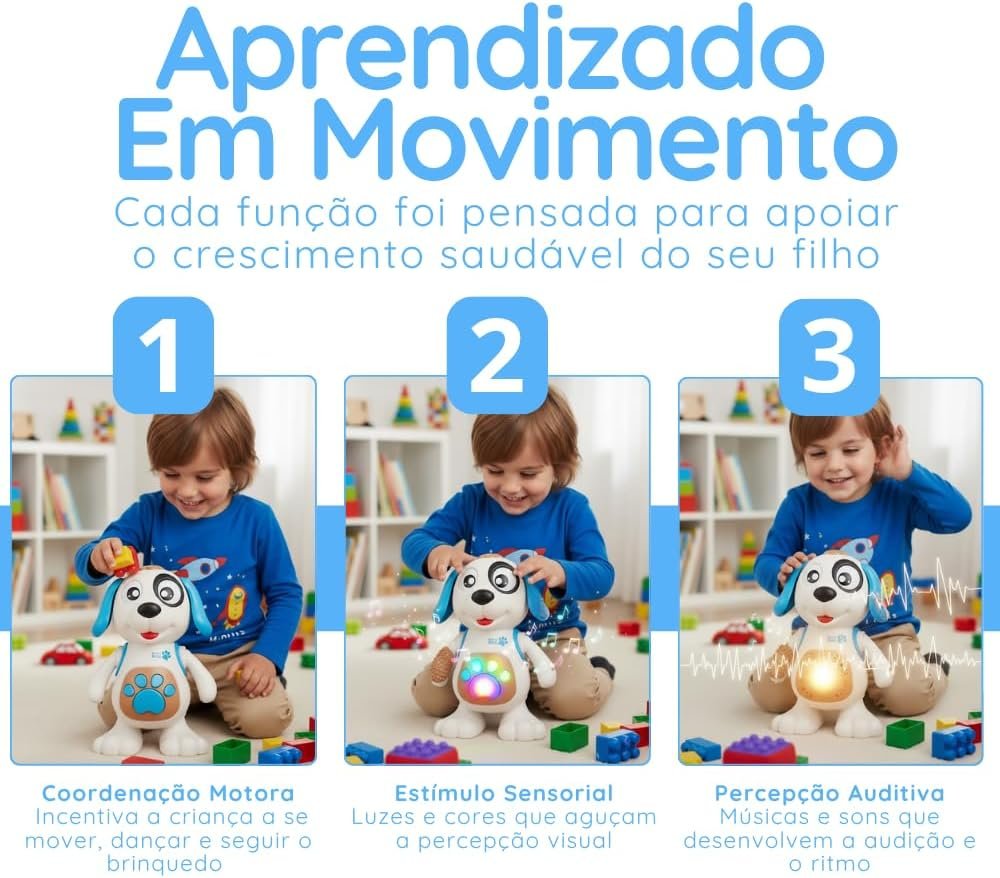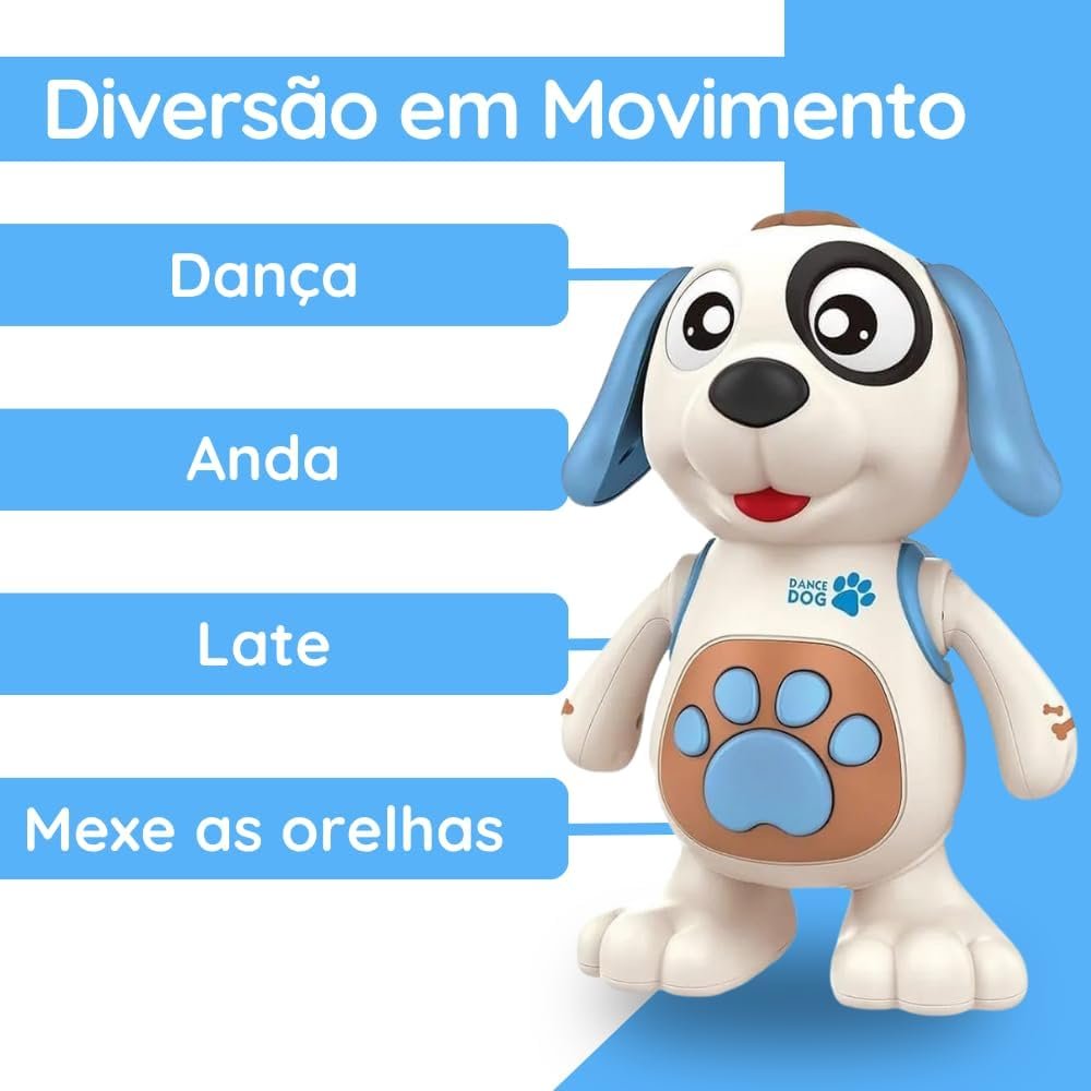 Cachorro Dançarino Interativo com Luz e Som – Brinquedo Musical Infantil Presente para Bebê 1 a 3 Anos Robo Dancing Dog Cachorros Brinquedos Infantil | Premium MyBrins (Azul)