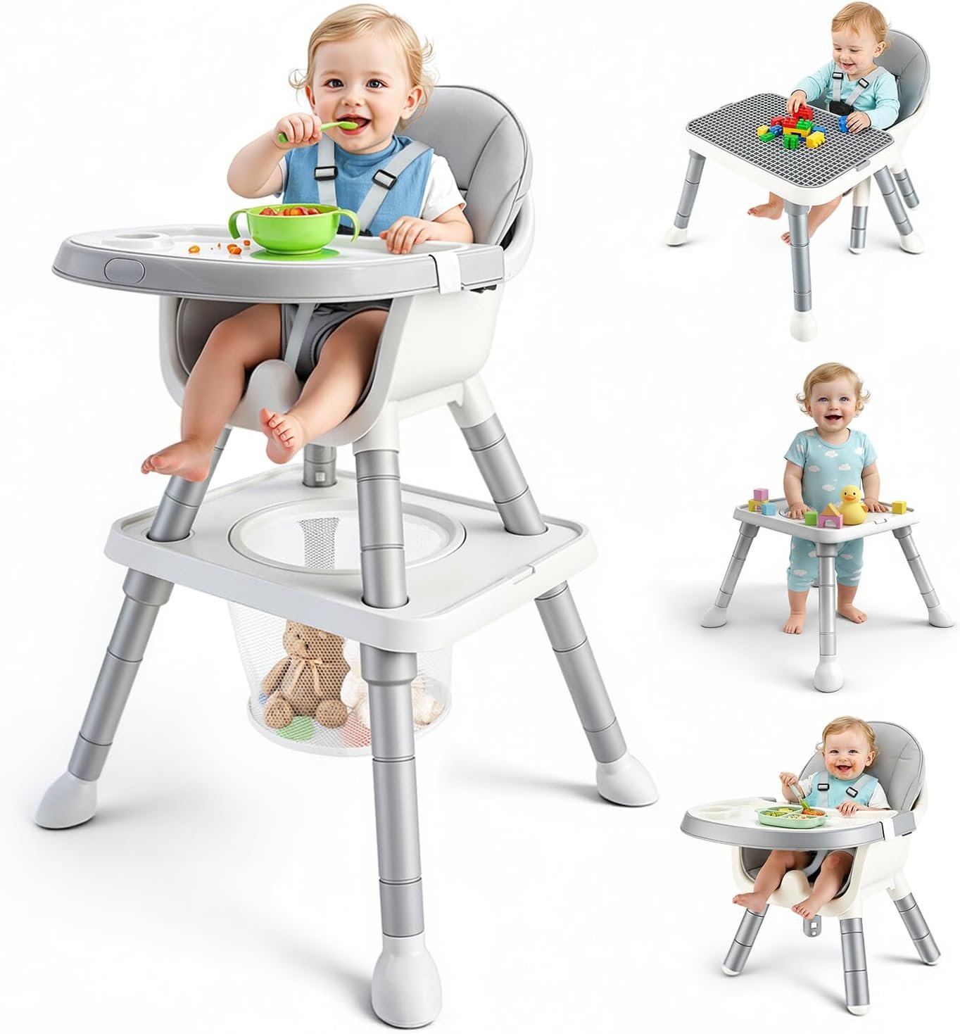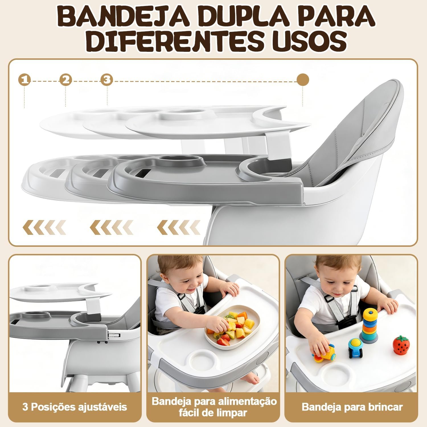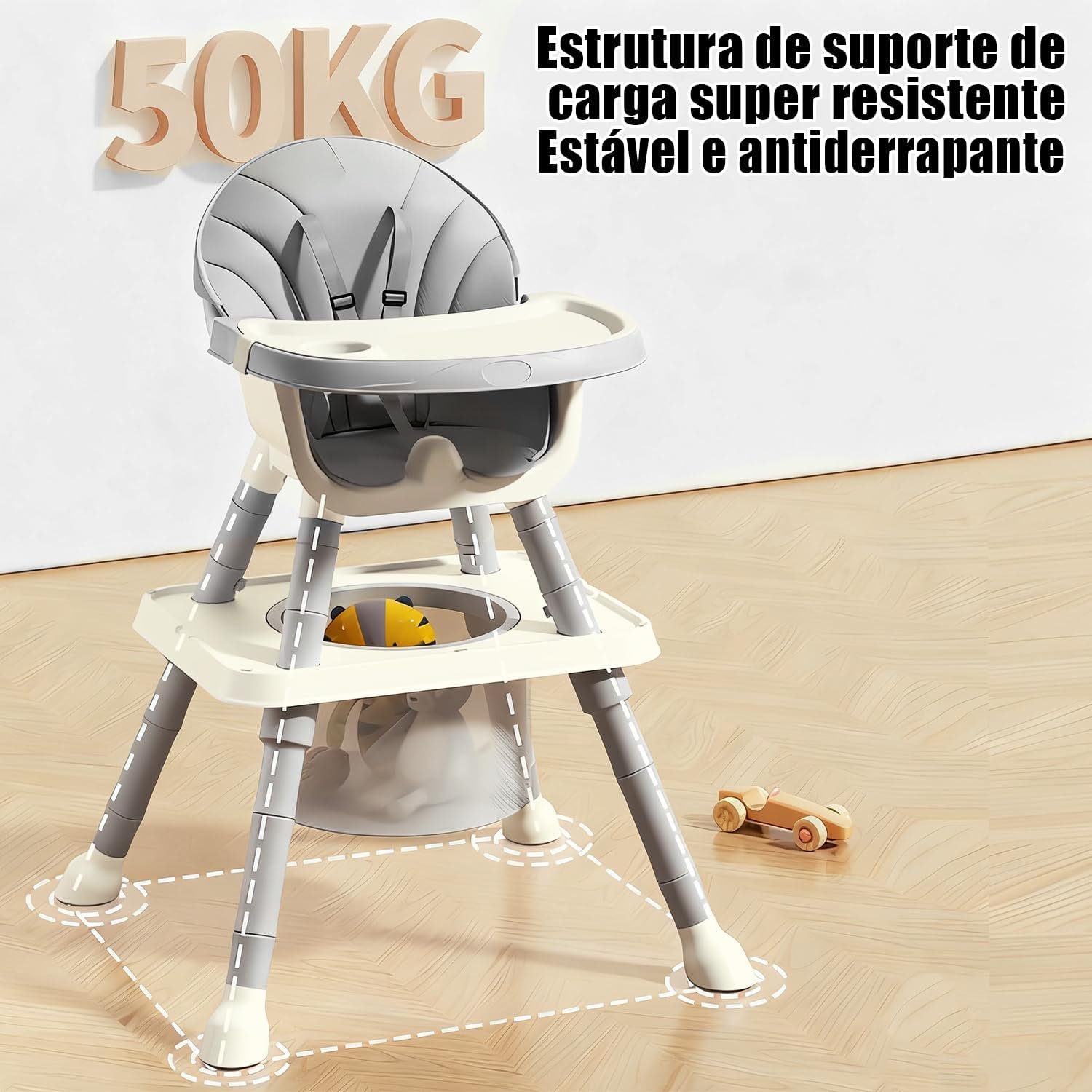 Cadeira de Alimentação 8 em 1, com Cinto de Segurança de 5 Pontos, Bandeja Removível, Cadeira e Mesa de Estudo, Suporta até 50 kg, Cor Cinza