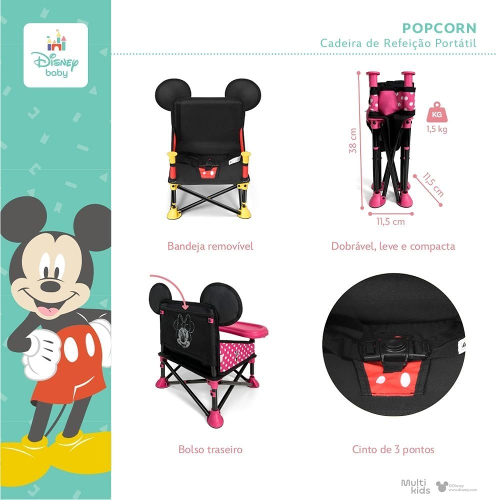 Cadeira de Alimentação Portátil Bebê 11kgs Mickey Multikids