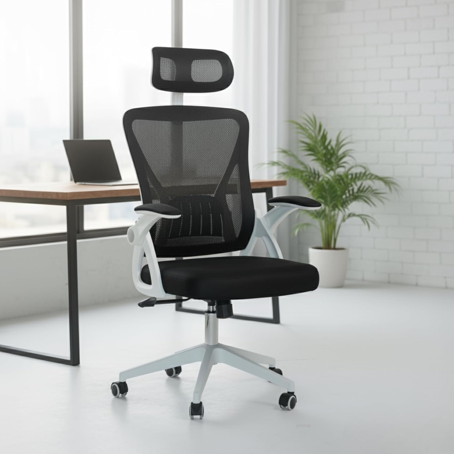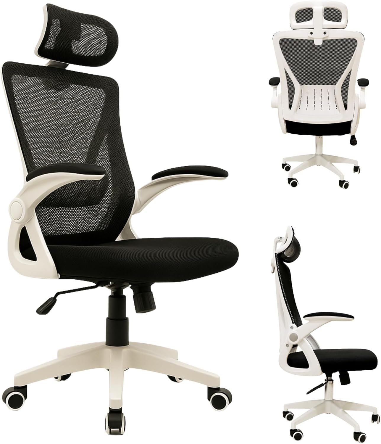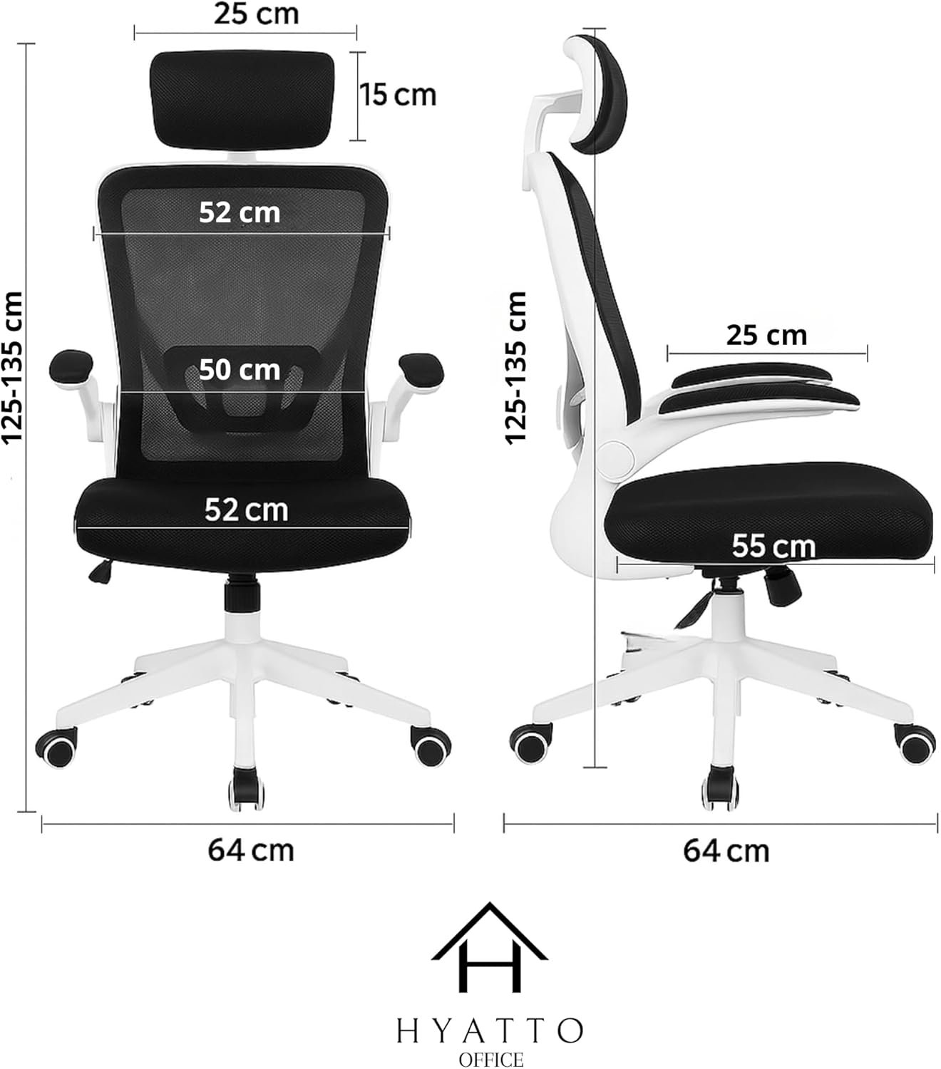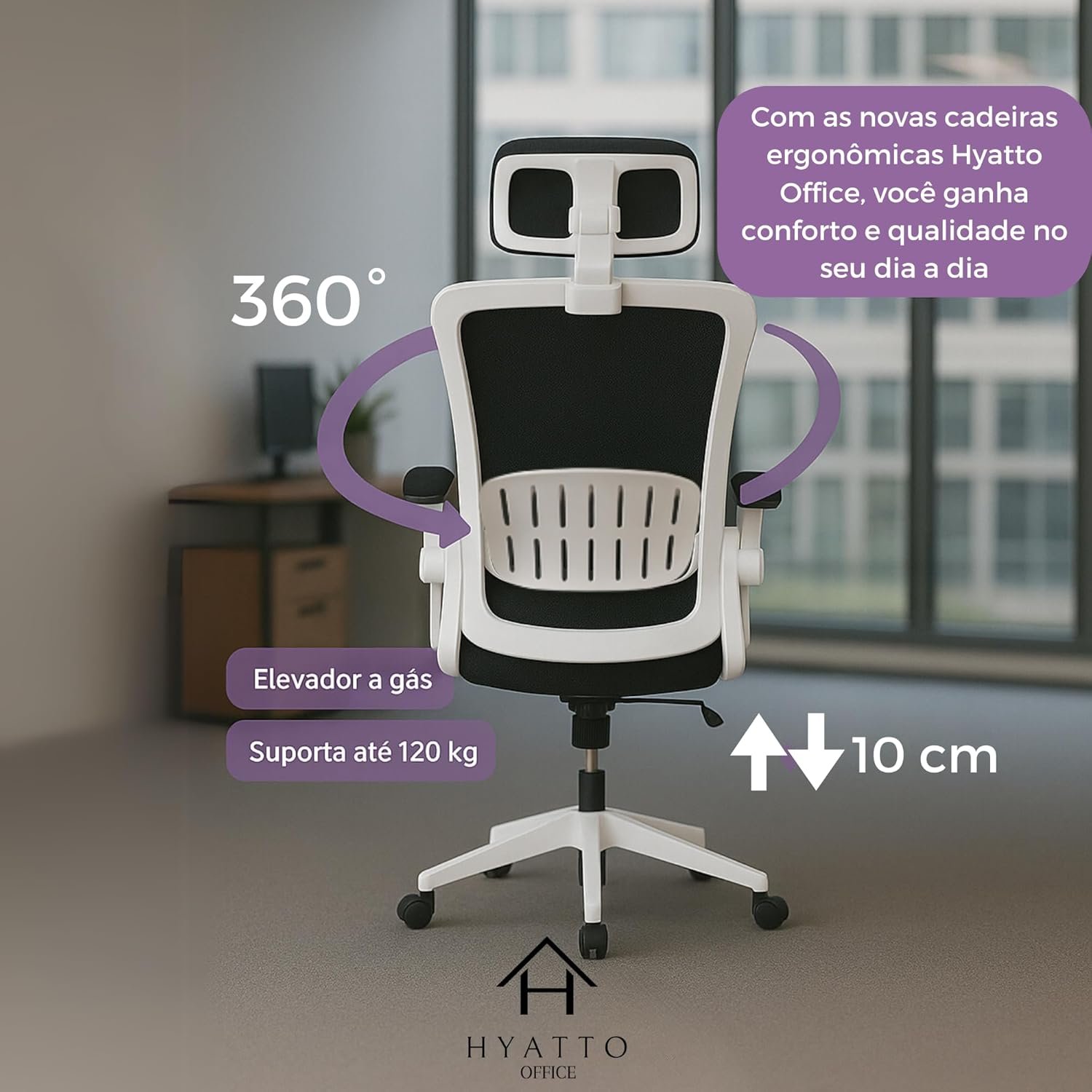 Cadeira de Escritório Ergonômica Giratória, Encosto de Cabeça Ajustável, Estofado Mesh, Tipo Presidente Confortável, Mecanismo de Elevação a gás, Inclinação, Preta e Branca | HYATTO OFFICE |Cadeira de Escritório Ergonômica Giratória, Encosto de Cabeça Ajustável, Estofado Mesh, Tipo Presidente Confortável, Mecanismo de Elevação a gás, Inclinação, Preta e Branca | HYATTO OFFICE |