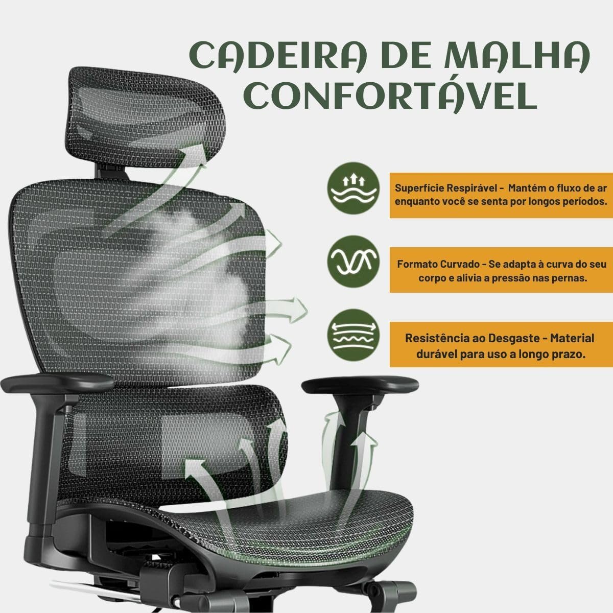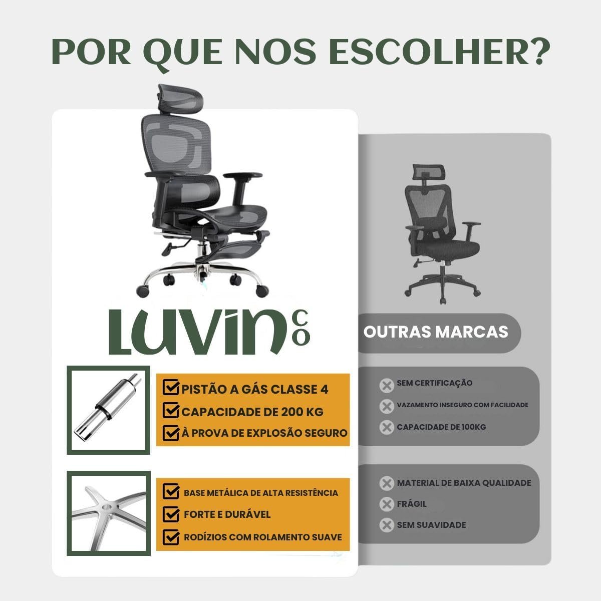 A cadeira de escritório ergonômica Mônaco BT07 Luvinco oferece o máximo de conforto e suporte para longas horas de trabalho. Com malha respirável, suporte lombar adaptável, apoio para pés retrátil e encosto ajustável em seis posições, esta cadeira é perfeita para quem busca ergonomia e funcionalidade. Suporta até 200kg, garantindo durabilidade e resistência. Leve já a sua para transformar sua experiência no escritório!