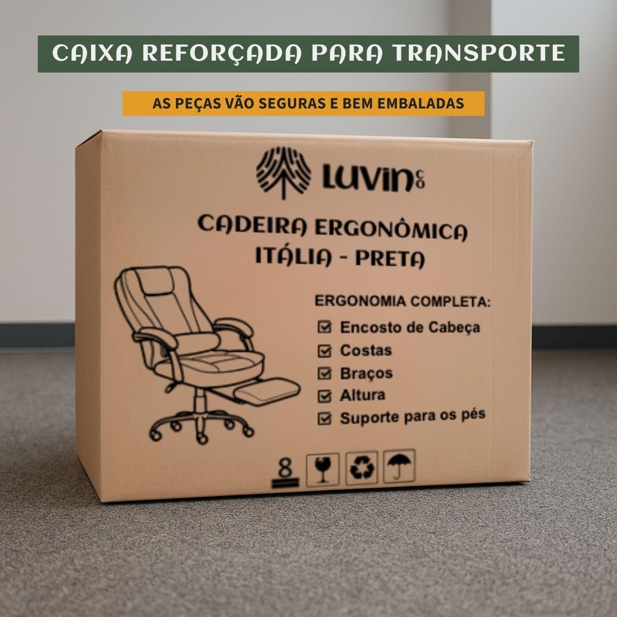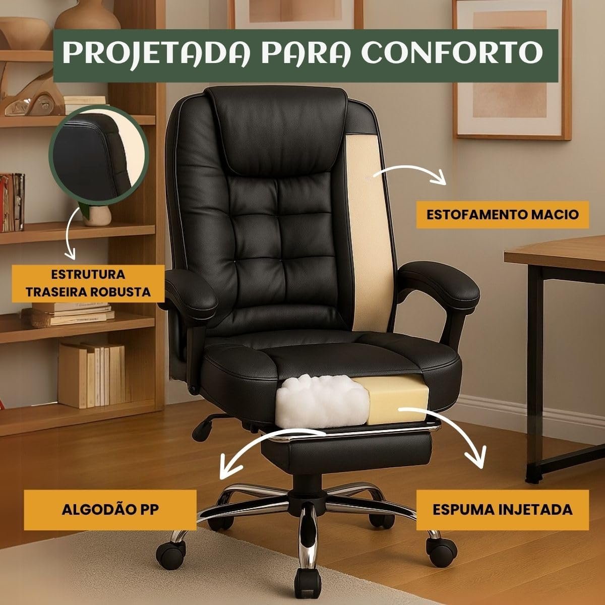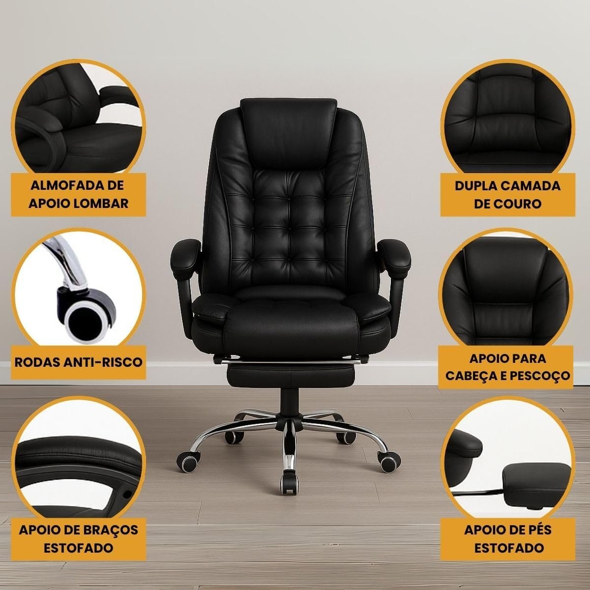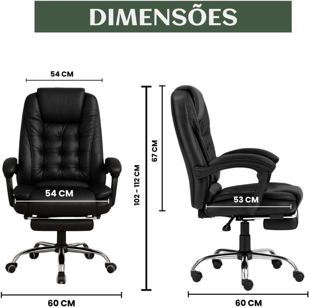 Cadeira De Escritório Itália Presidente Ergonômica Couro Sintético Encosto Ajustável Com Trava E Apoio Para Pés Cor Preta Luvinco (Preto)