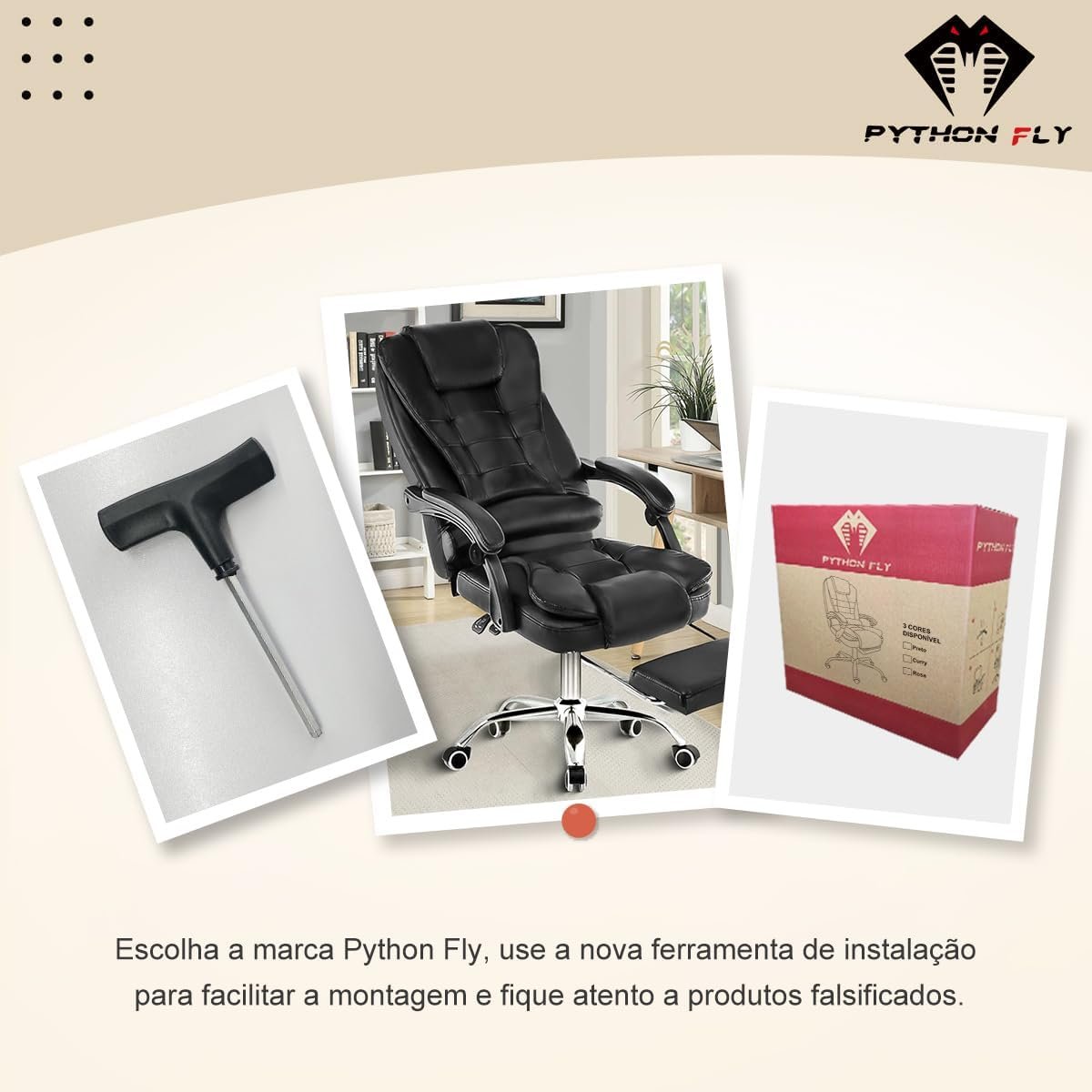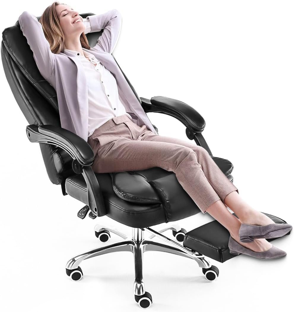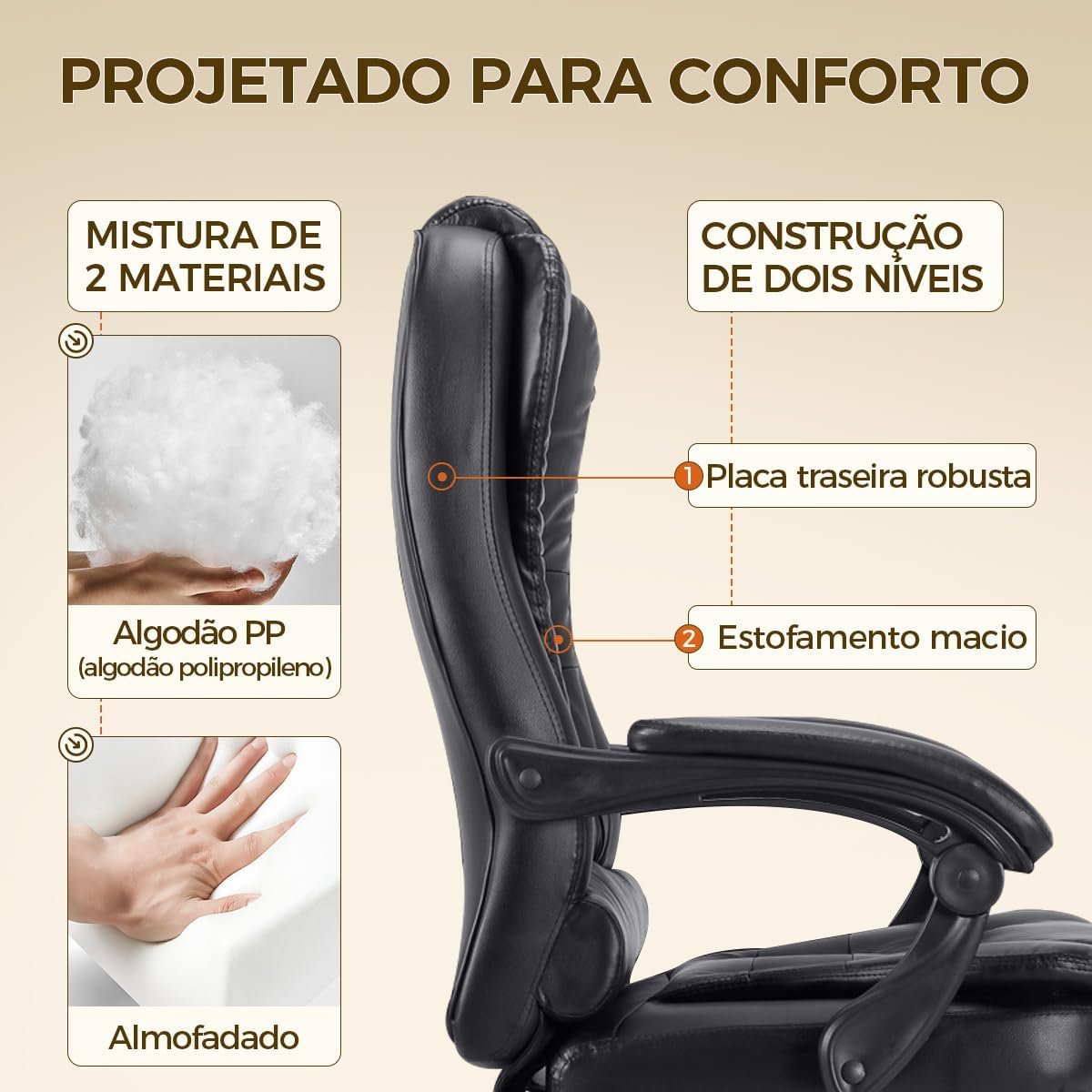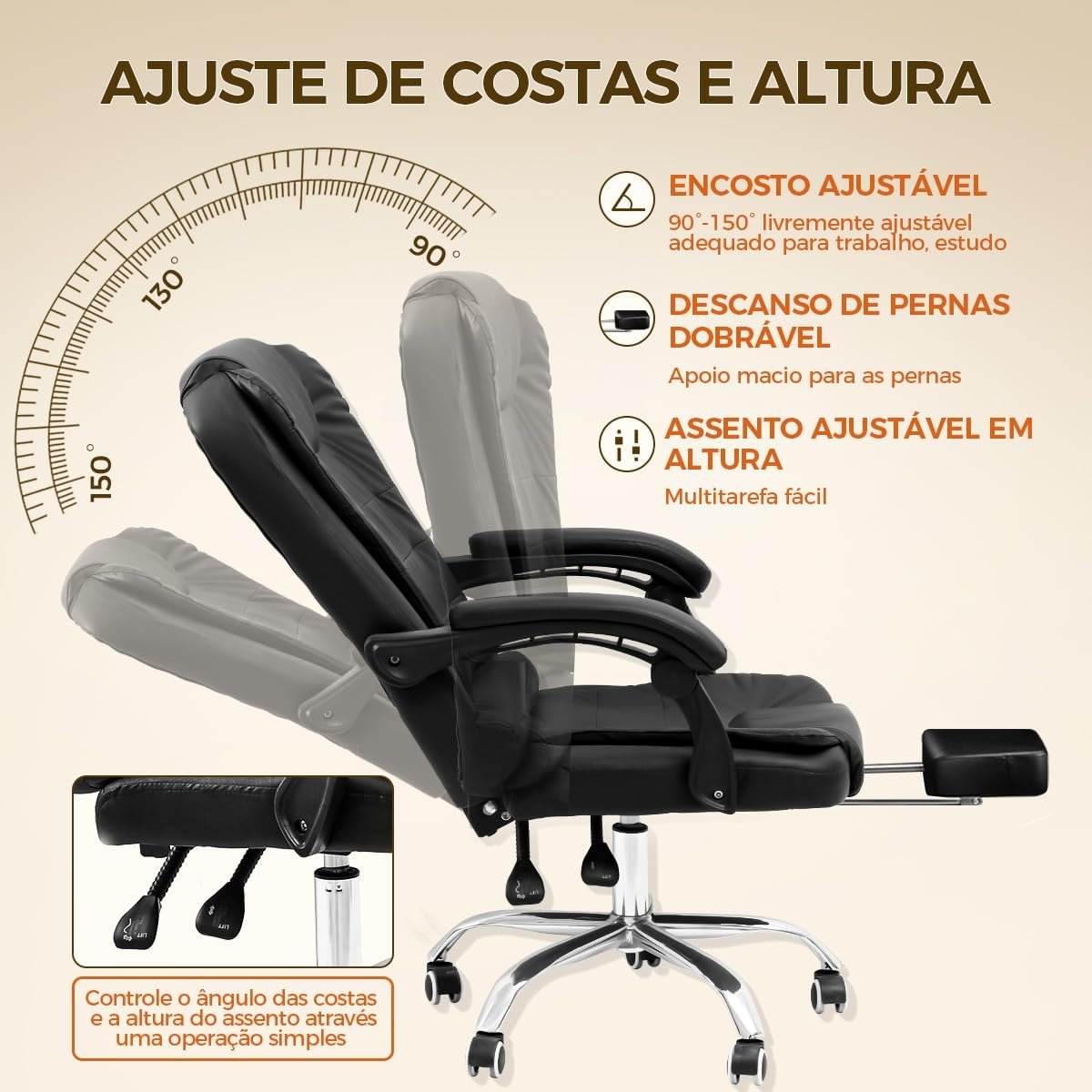 Cadeira de escritório presidente, cadeira de home office com apoio para os pés e encosto ajustável(Preto)