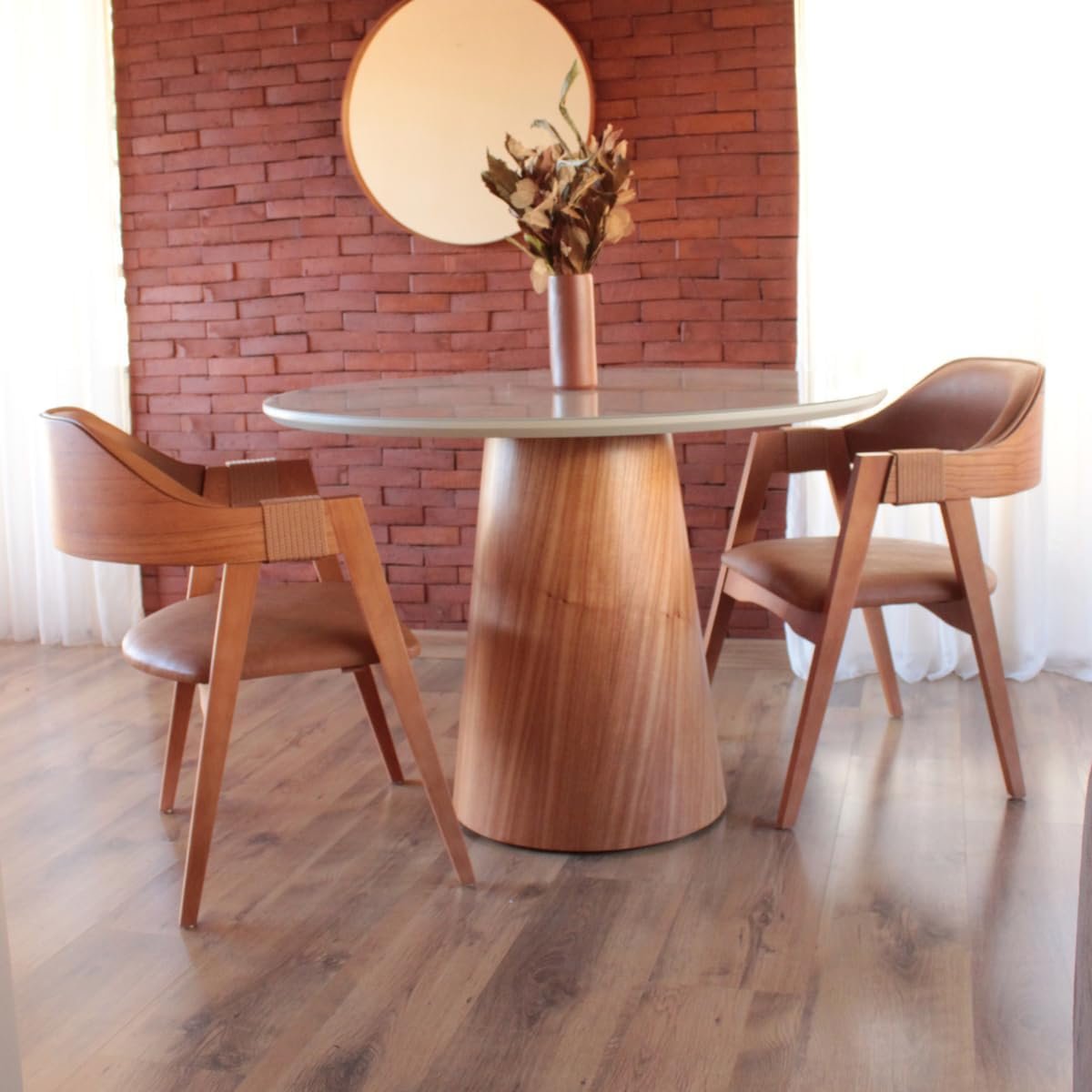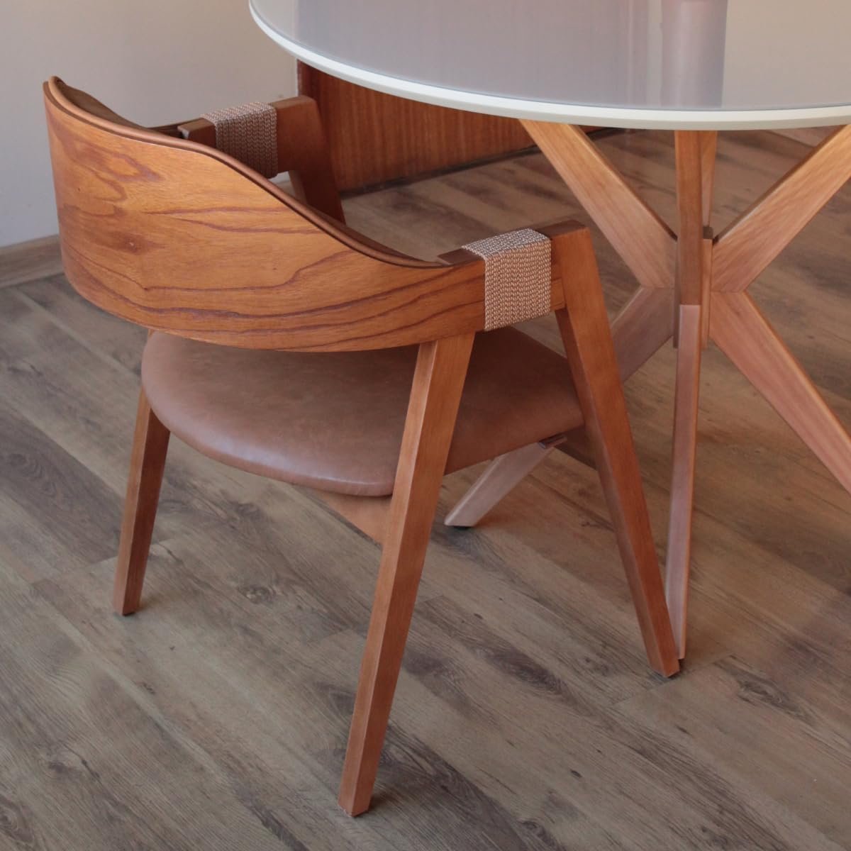 Seja o primeiro a avaliar “Cadeira de Jantar Com Encosto Curvo Base em Madeira Maciça Detalhe no Braço em Corda Nautica – Emily (Couro Marrom)”