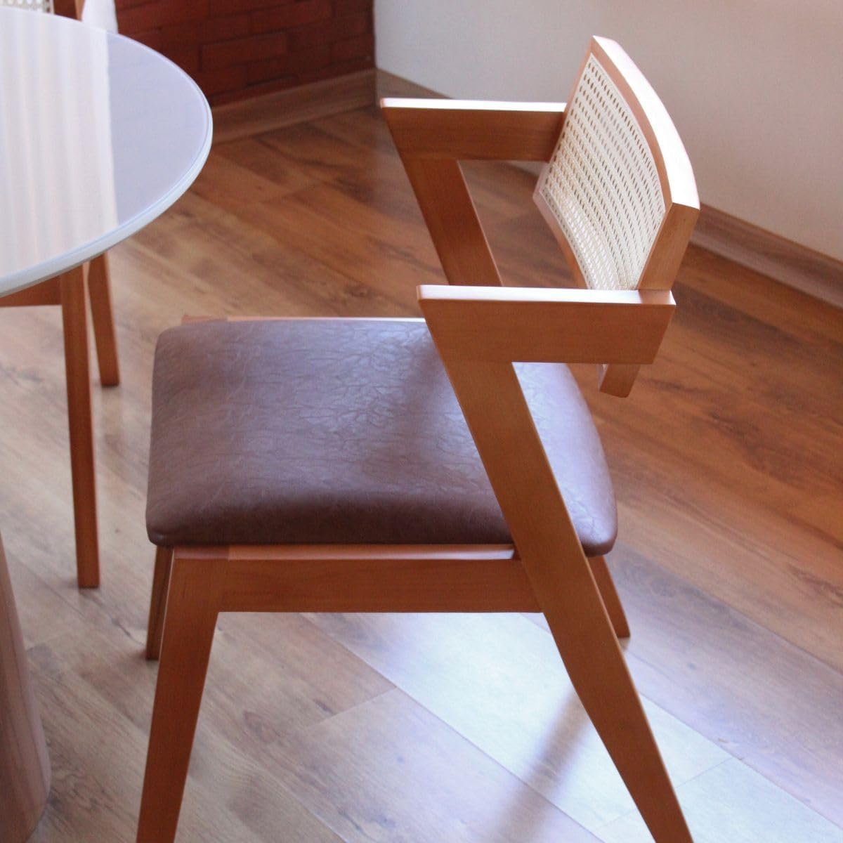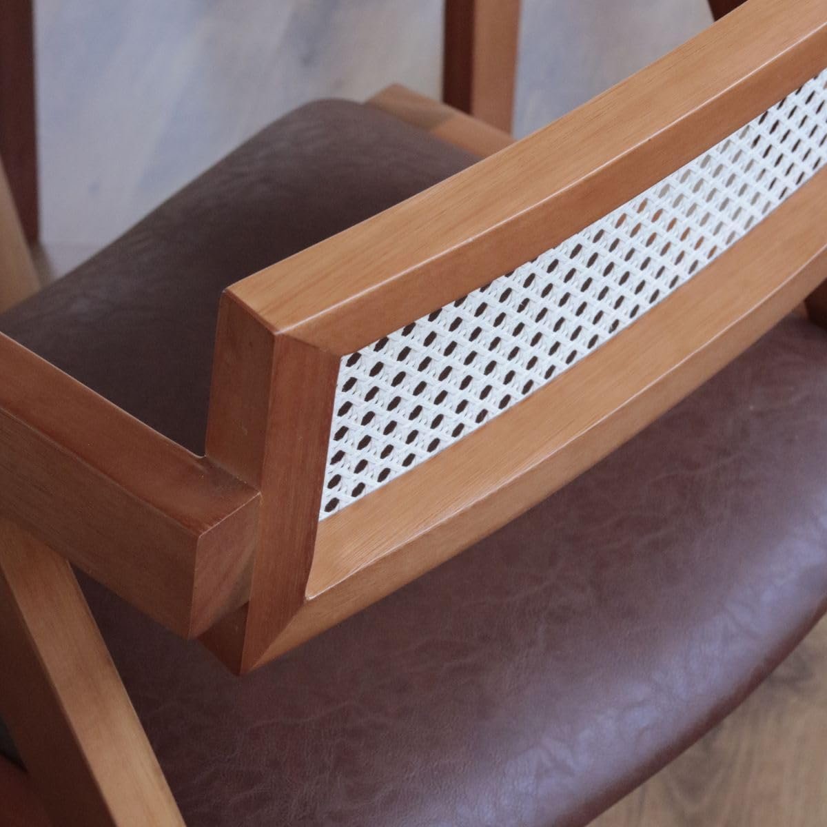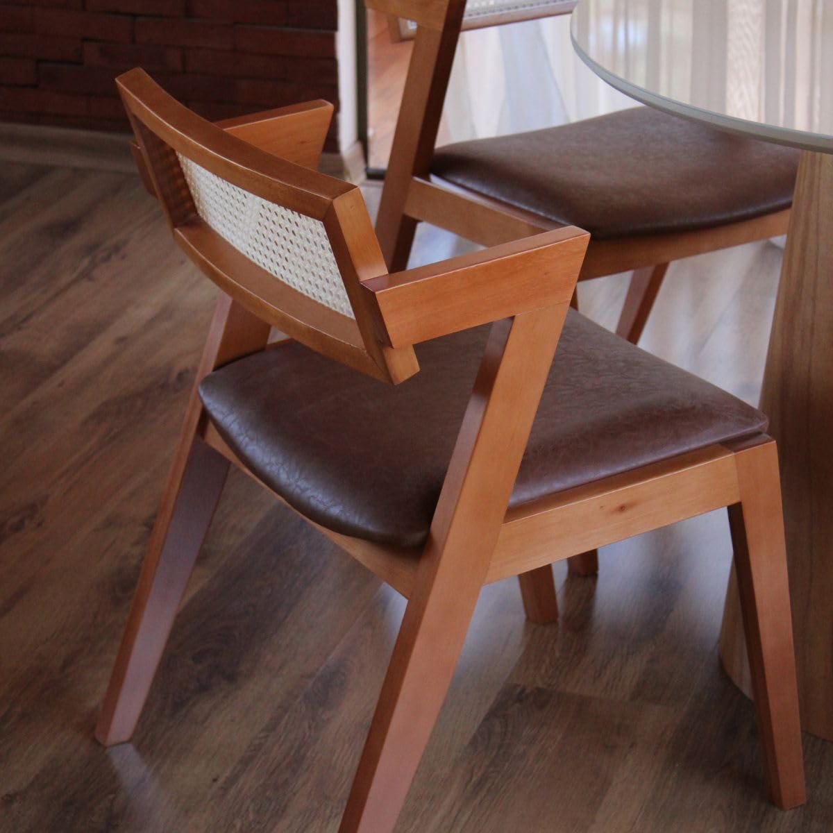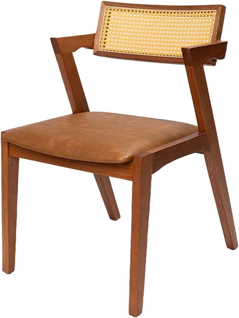Cadeira de Jantar Estofada Madeira Maciça Com Telinha Rattan Natural Stter (Couro Marrom)Cadeira de Jantar Estofada Madeira Maciça Com Telinha Rattan Natural Stter (Couro Marrom)