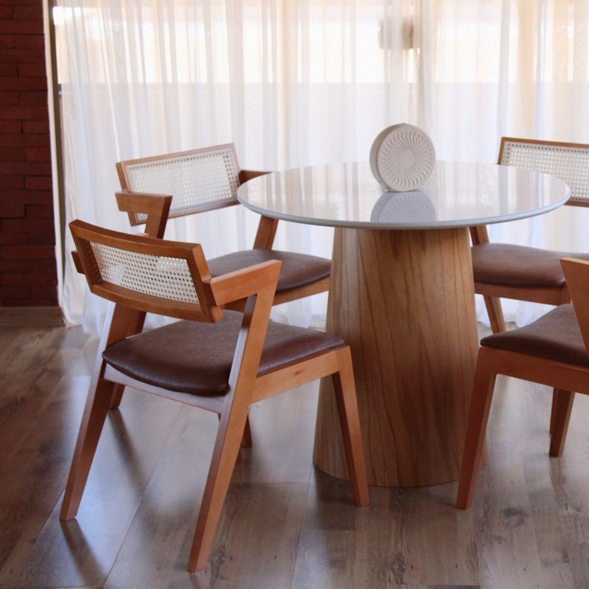 Seja o primeiro a avaliar “Cadeira de Jantar Estofada Madeira Maciça Com Telinha Rattan Natural Stter (Couro Marrom)”