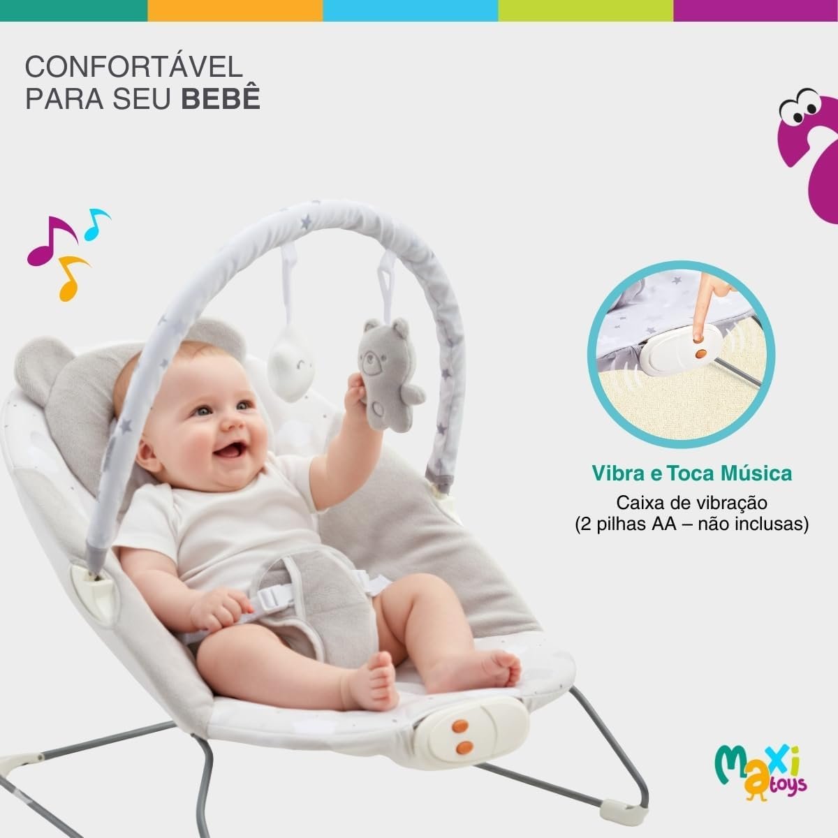 Cadeira Descanso Bebê Musical Polar Skyline Cinza Maxi Baby