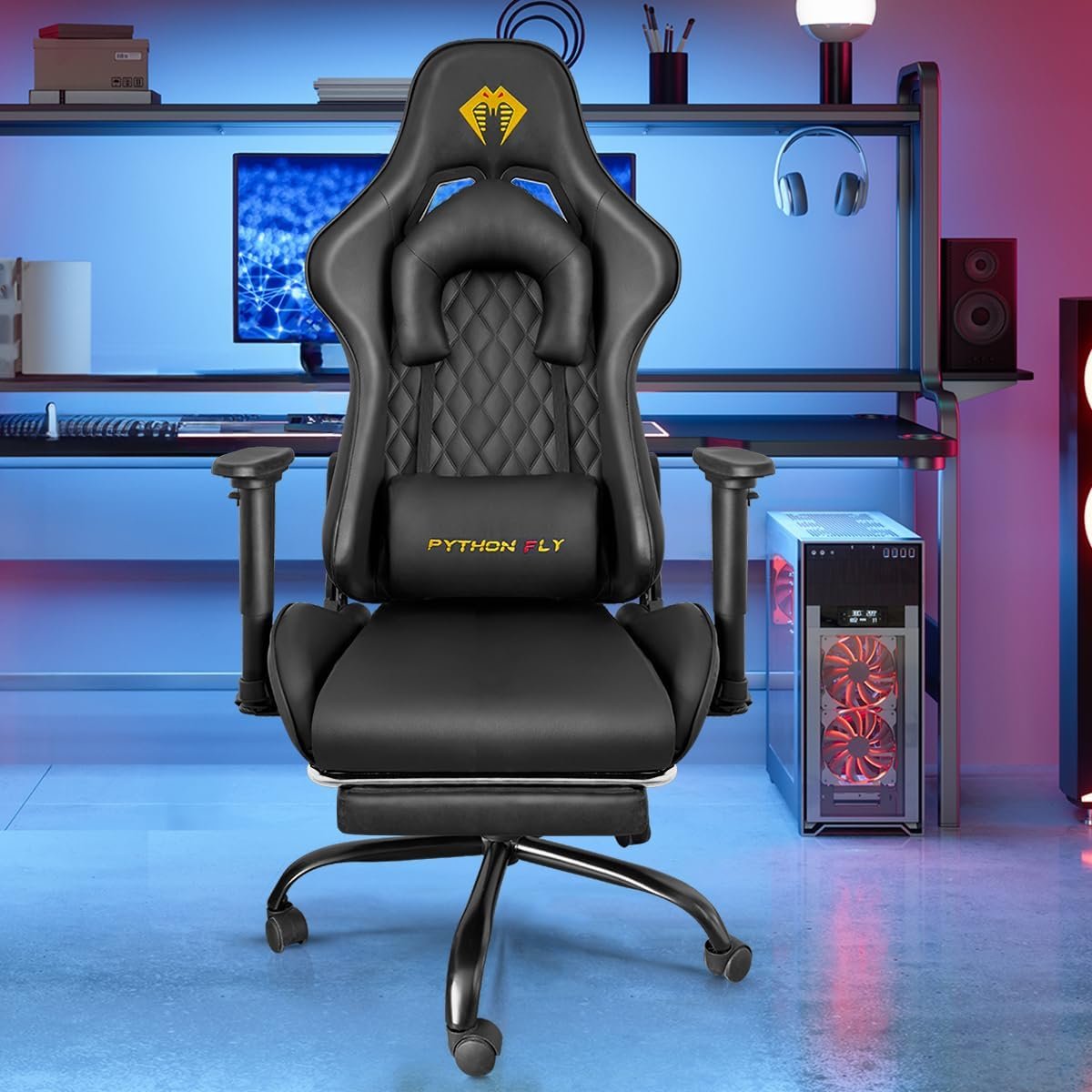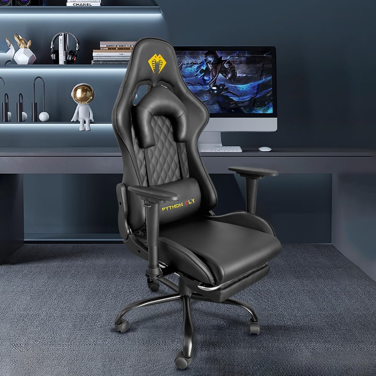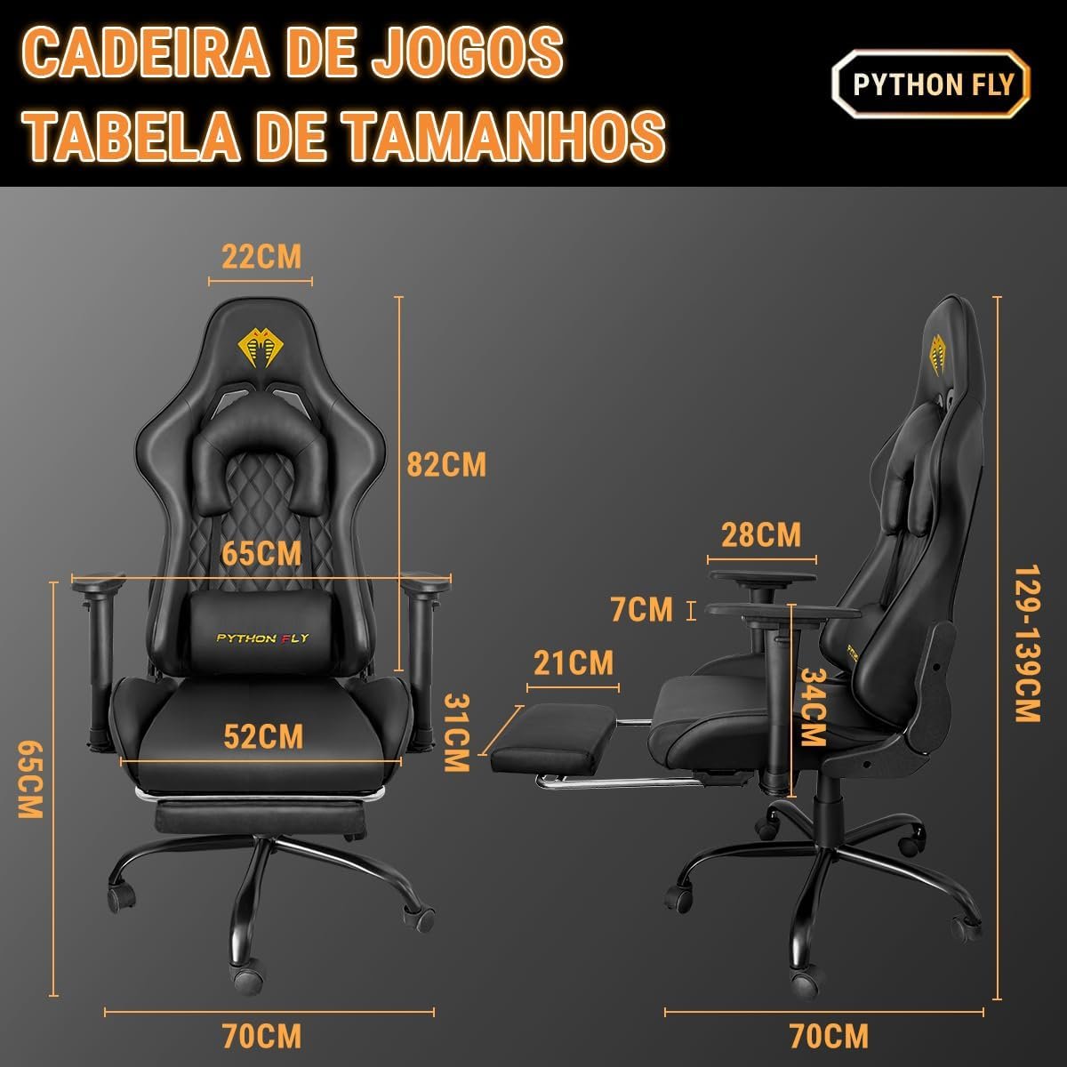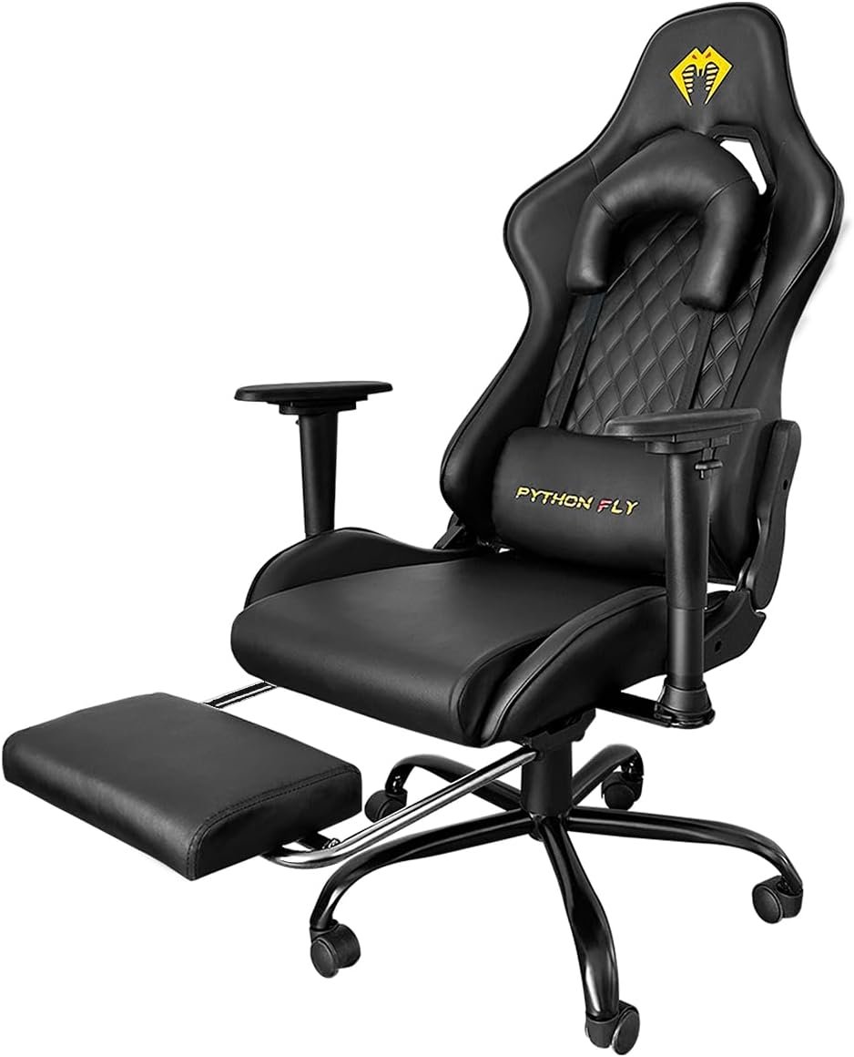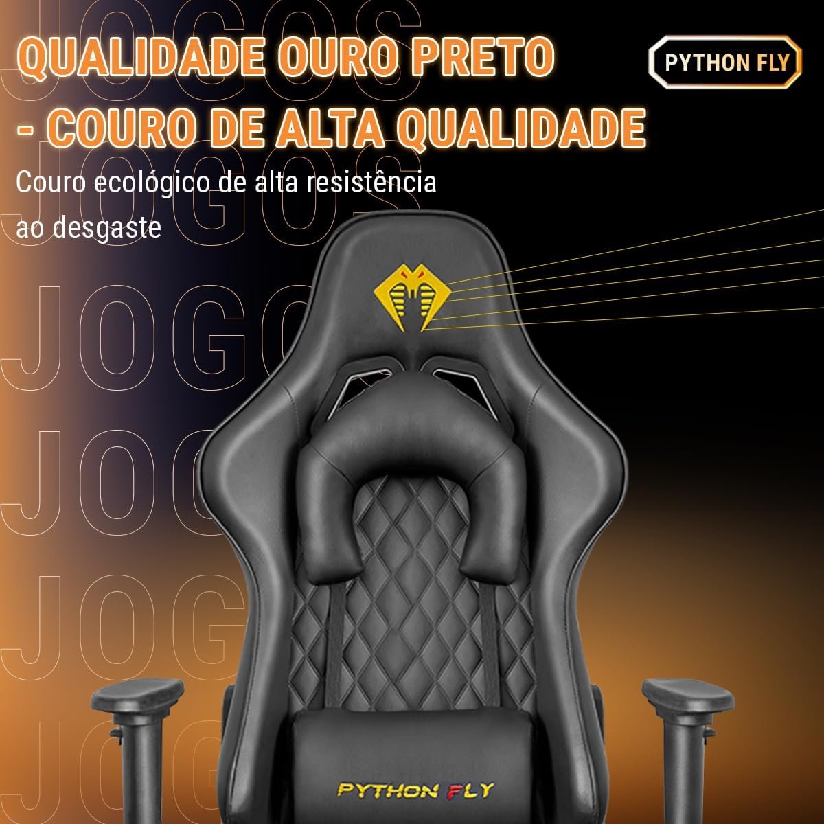 Cadeira Gamer Python Fly Deluxe, Design Ergonômico, Ajuste De 90-150 Graus, Design Preto E Dourado