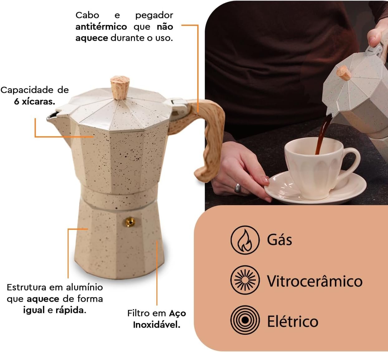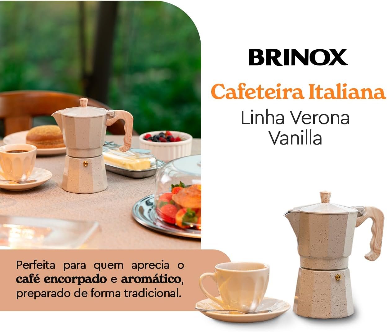 Cafeteira de Alumínio 6 Xícaras 300Ml Verona Brinox – Vanilla