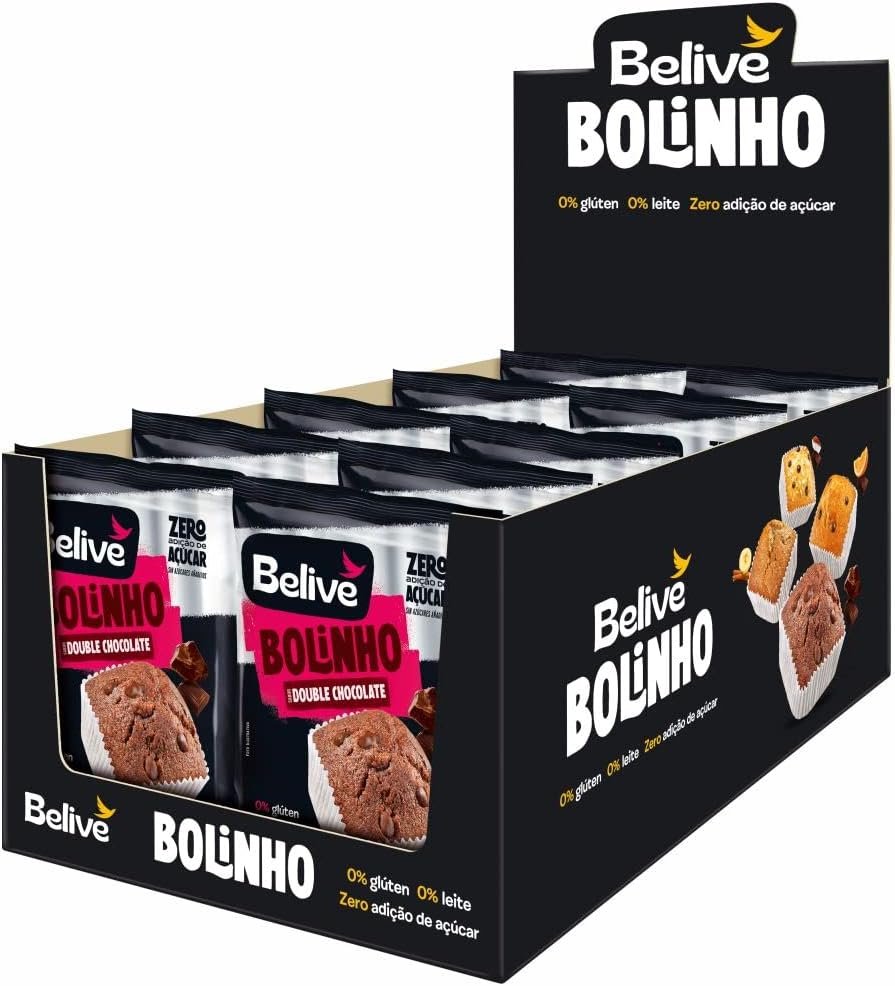 Caixa de Bolinhos de Chocolate Sem Açúcar Sem Glúten Sem Leite Belive 10 unidades de 40gCaixa de Bolinhos de Chocolate Sem Açúcar Sem Glúten Sem Leite Belive 10 unidades de 40g