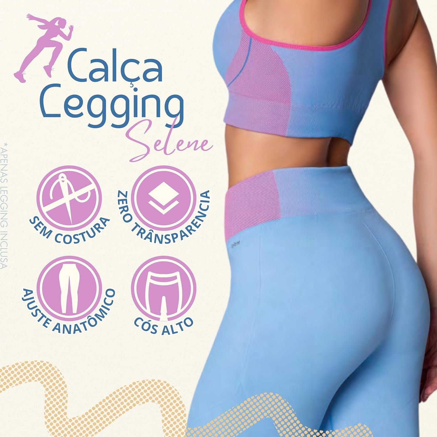 Calça Legging Academia Zero Transparências Sem Costura Cós Alto Microfibra Feminina Selene
