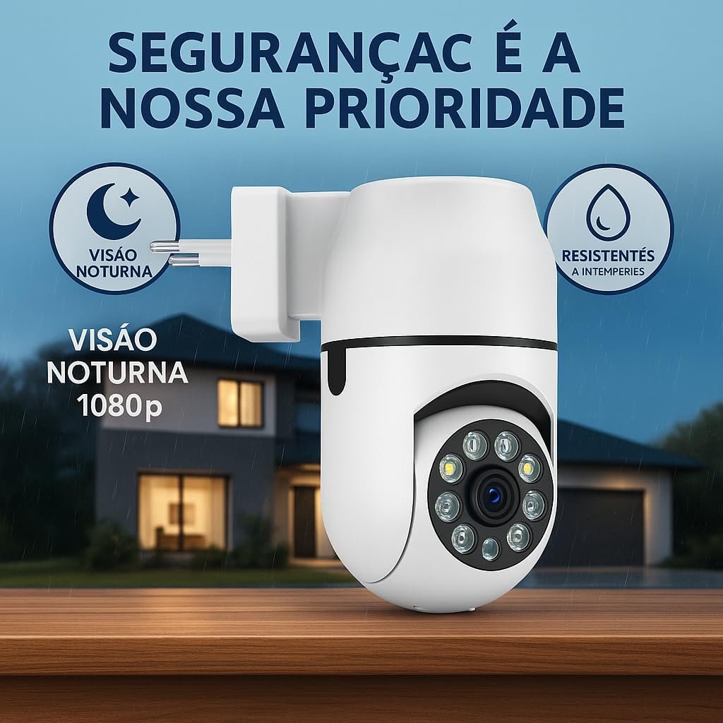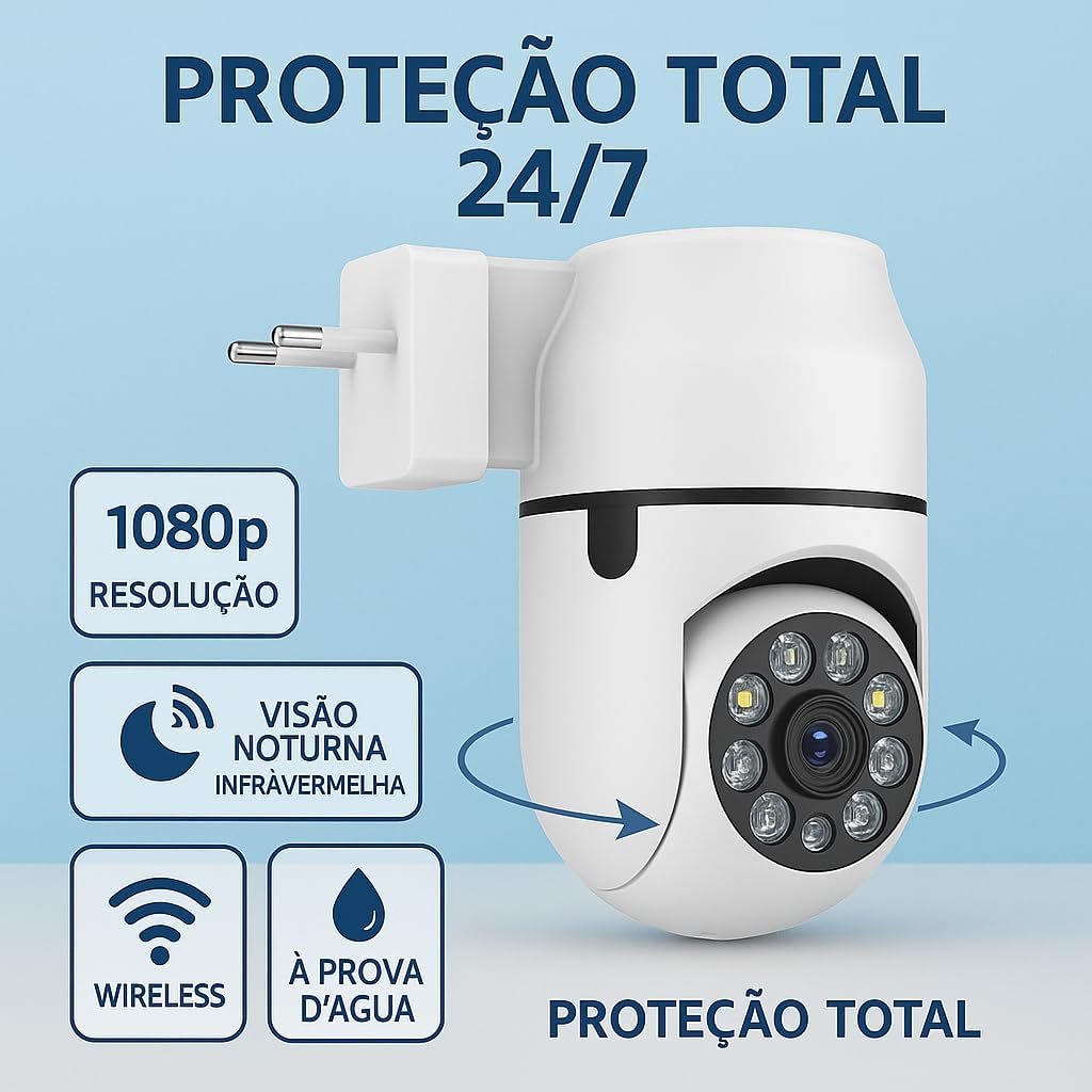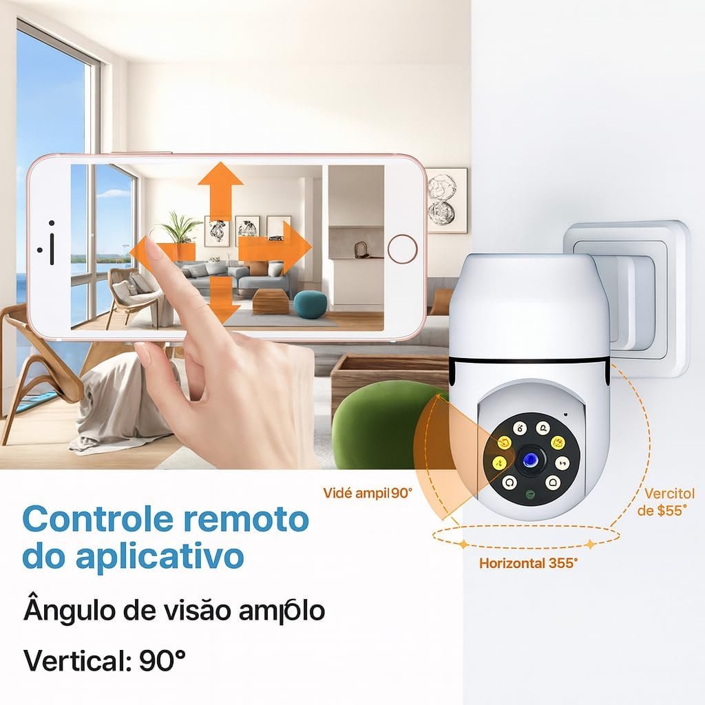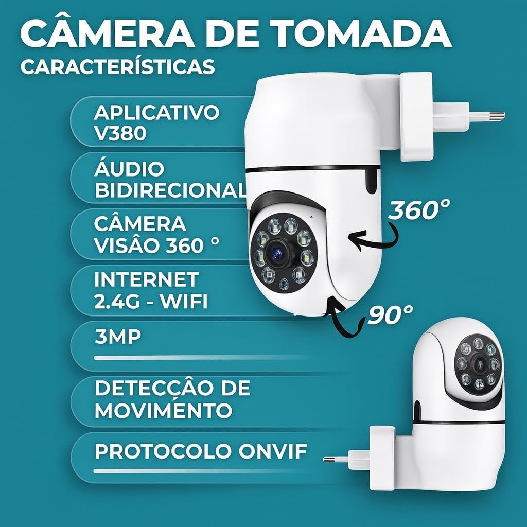 Câmera de Segurança Tomada Sem Fio 2MP WiFi Visão 360° HD 1080p Câmera IP Infravermelho Controle via App 2 Modos de Visão Noturna Áudio Bidirecional Detecção de Movimento Premium