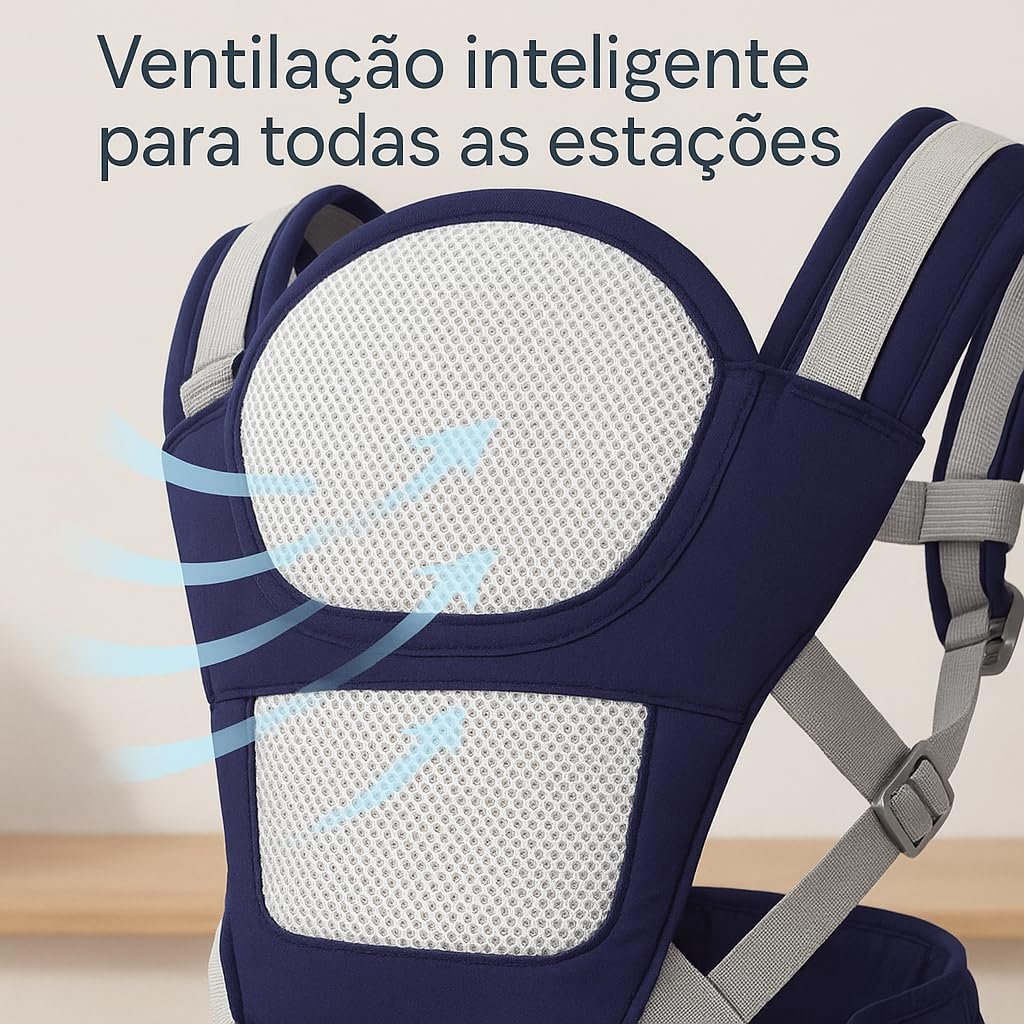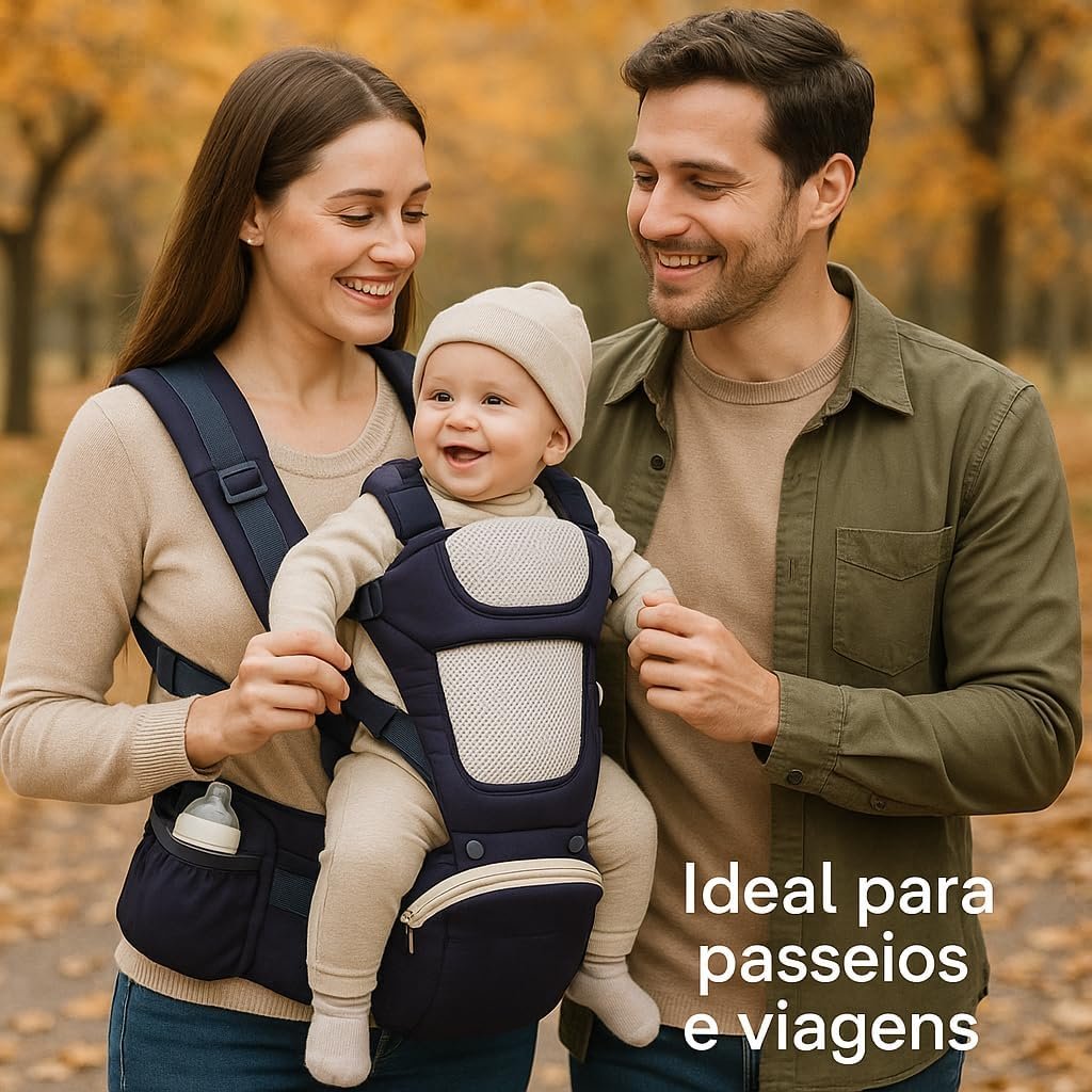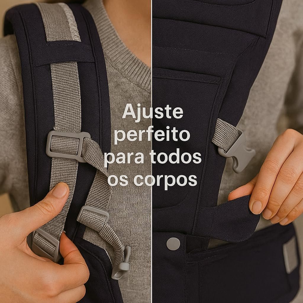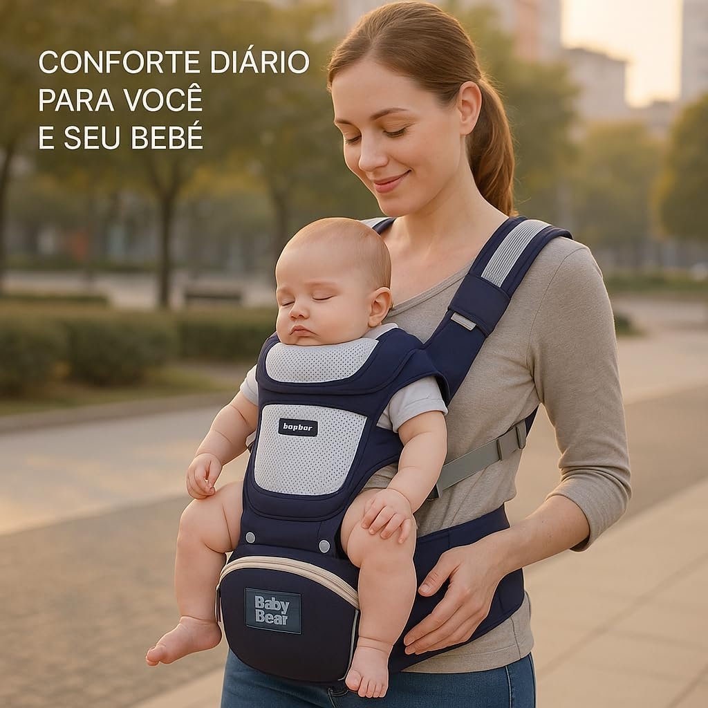 Canguru ergonômico ajustável 3 em 1 para bebê com assento acolchoado respirável suporte lombar alças largas bolsos laterais uso recém-nascido até 36 meses