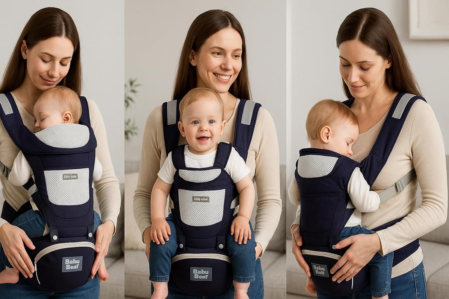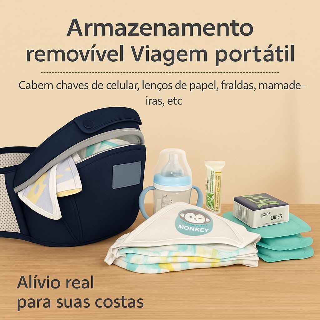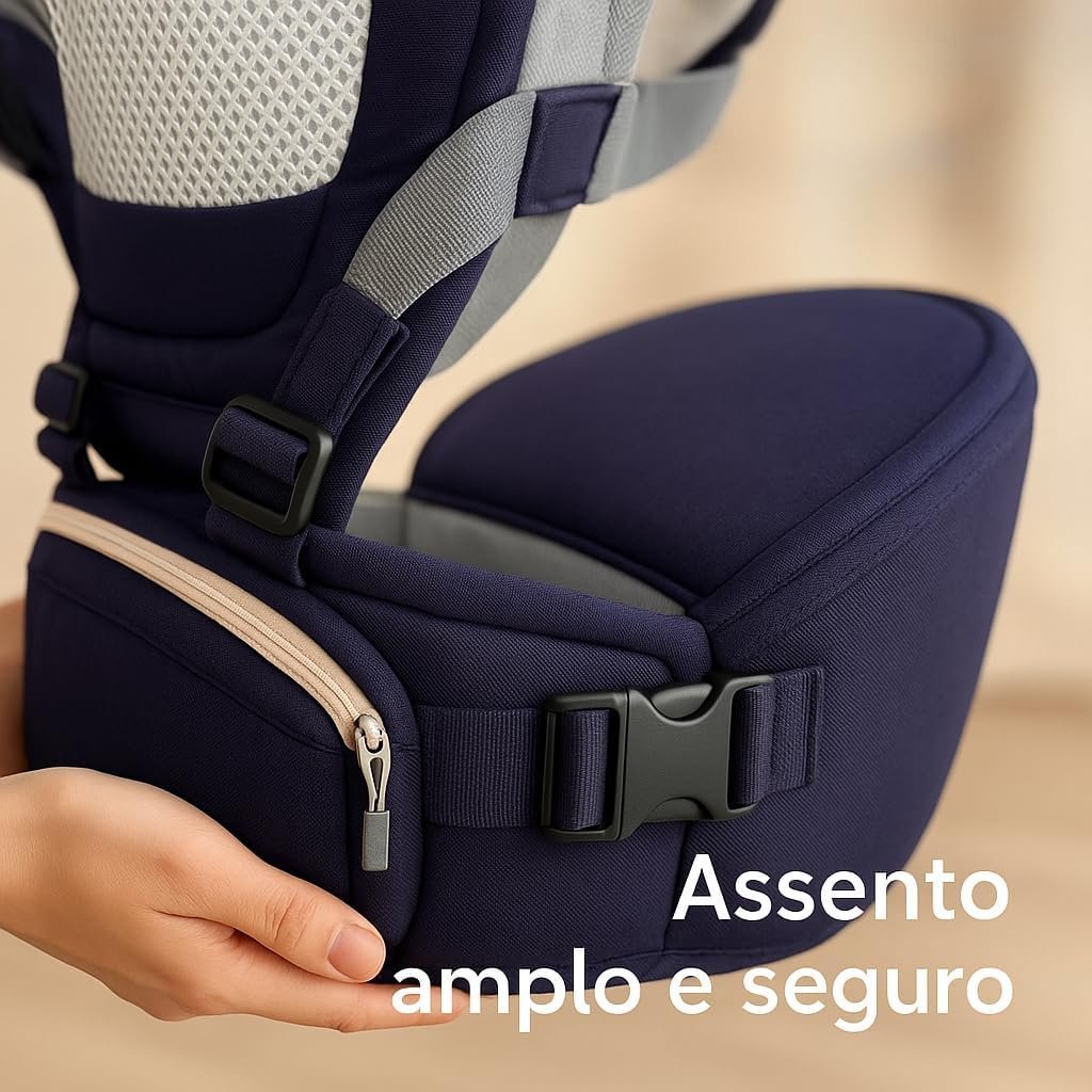 Canguru ergonômico ajustável 3 em 1 para bebê com assento acolchoado respirável suporte lombar alças largas bolsos laterais uso recém-nascido até 36 meses