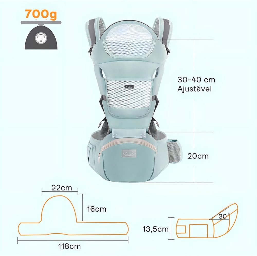 Canguru Para Bebe Adequado Para 0-36 Meses Canguru Ergonomico Para Bebe Alça De Transporte Multifuncional 6 em 1 (Verde Claro) Premium