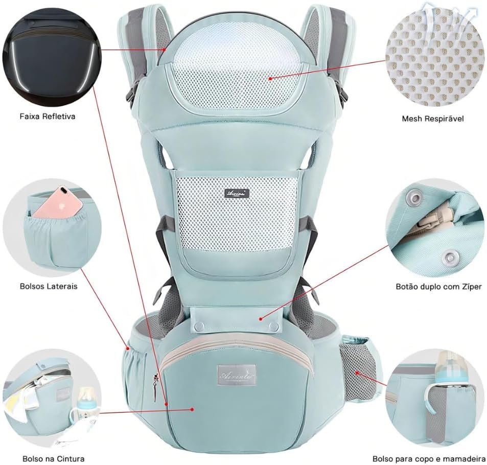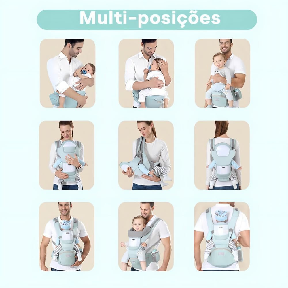Canguru Para Bebe Adequado Para 0-36 Meses Canguru Ergonomico Para Bebe Alça De Transporte Multifuncional 6 em 1 (Verde Claro) PremiumCanguru Para Bebe Adequado Para 0-36 Meses Canguru Ergonomico Para Bebe Alça De Transporte Multifuncional 6 em 1 (Verde Claro) Premium