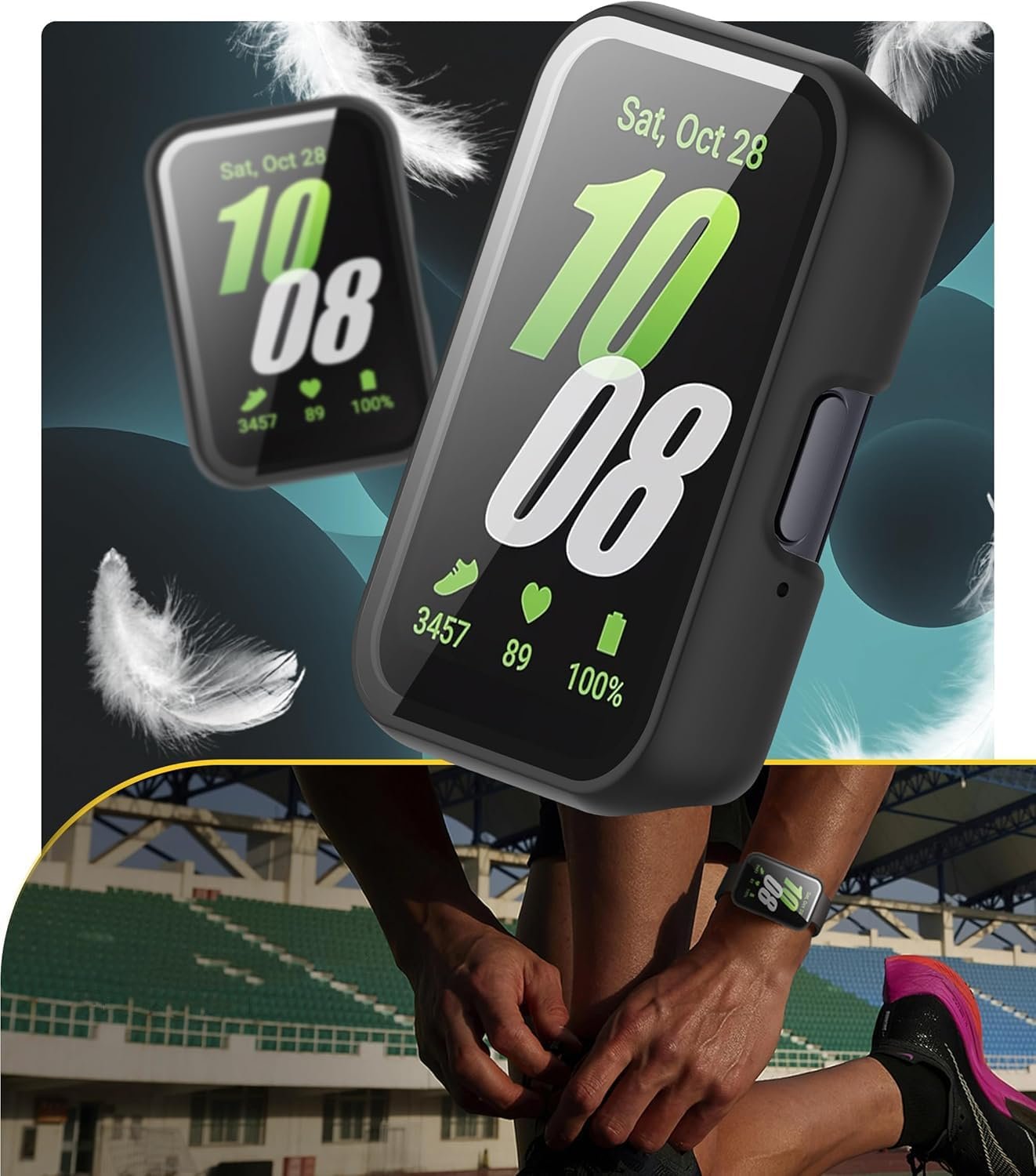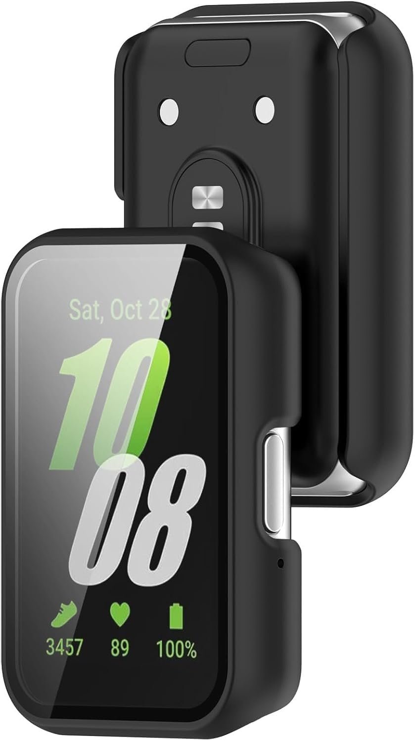 Capa Bumper com Película Compatível com Samsung Galaxy Fit 3 – Case Protetora para Smartwatch, cor Preto