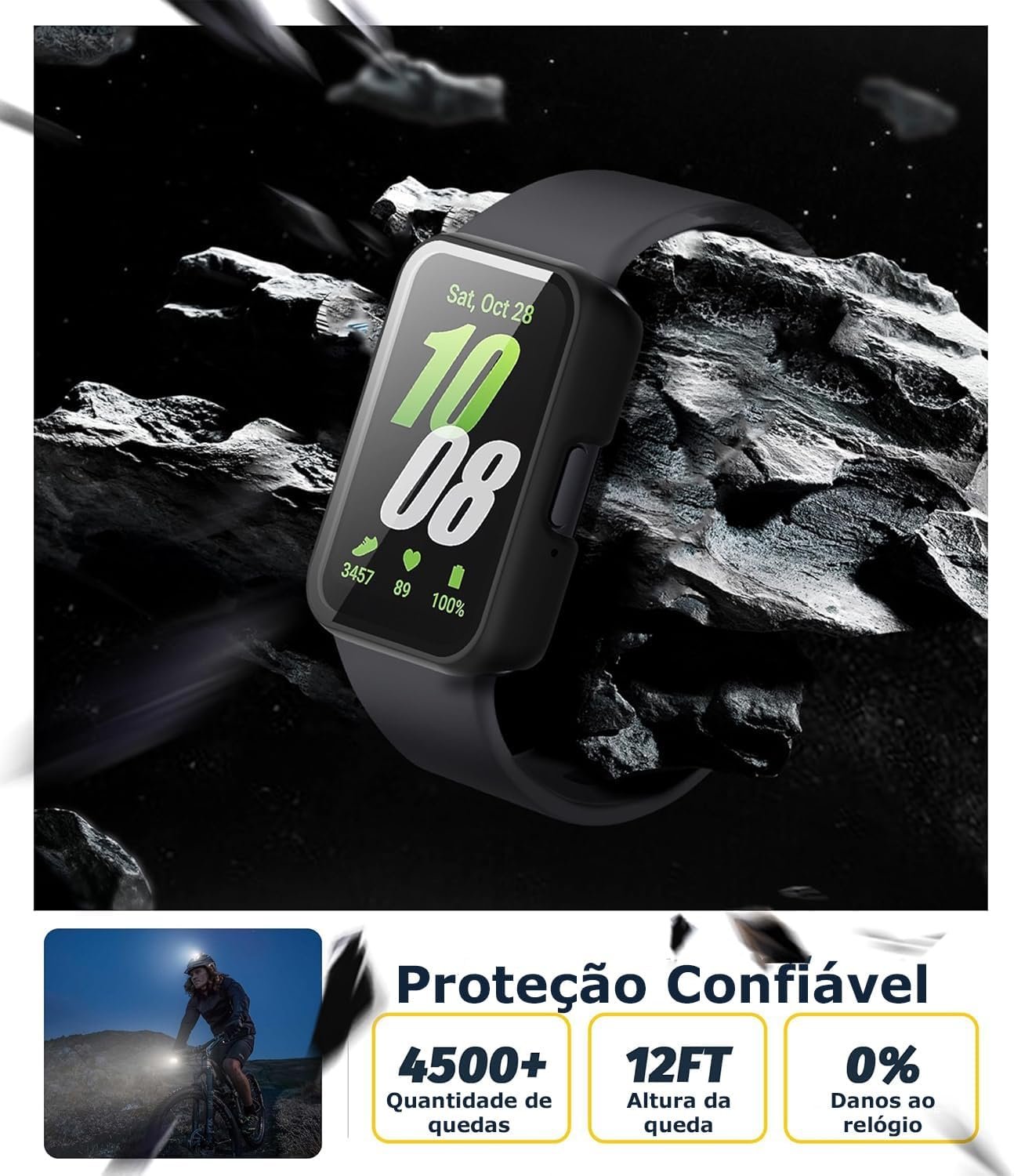 Seja o primeiro a avaliar “Capa Bumper com Película Compatível com Samsung Galaxy Fit 3 – Case Protetora para Smartwatch, cor Preto”