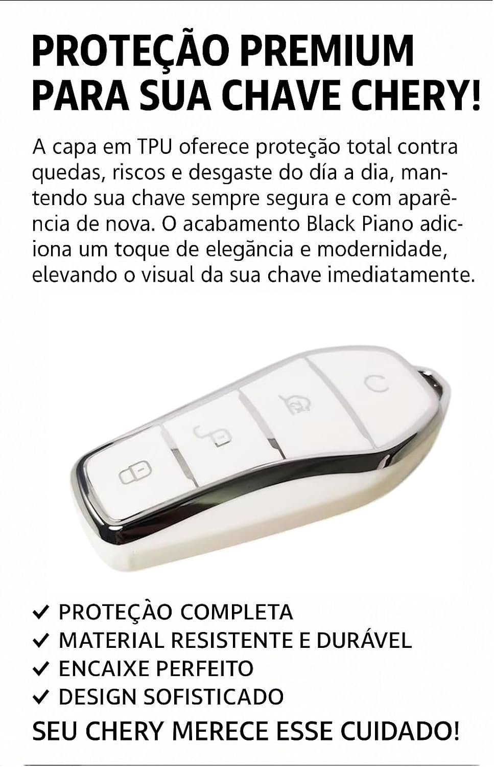 Capa de Silicone (Branca) para Chave Presencial BYD Song Plus Premium / Song Pro / Yuan / Dolphin / Mini / Shark / Tan / Han (Não Bloqueia Sinal)