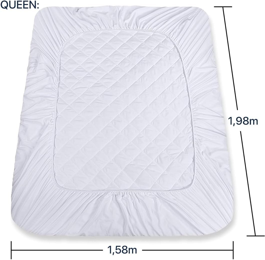 Capa Impermeável Protetor para Colchão Queen – 4 Camadas de Proteção – 100% Impermeável – Respirável e Não faz barulho (branco, Queen)