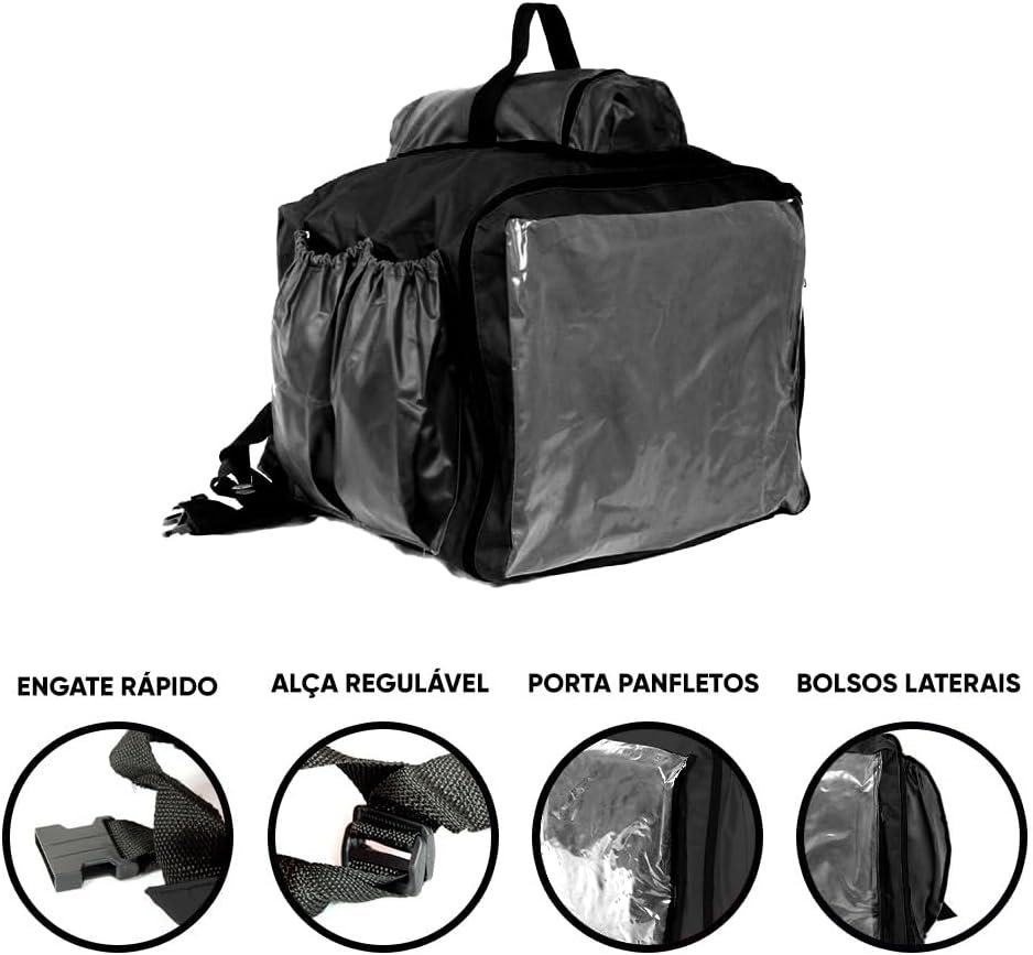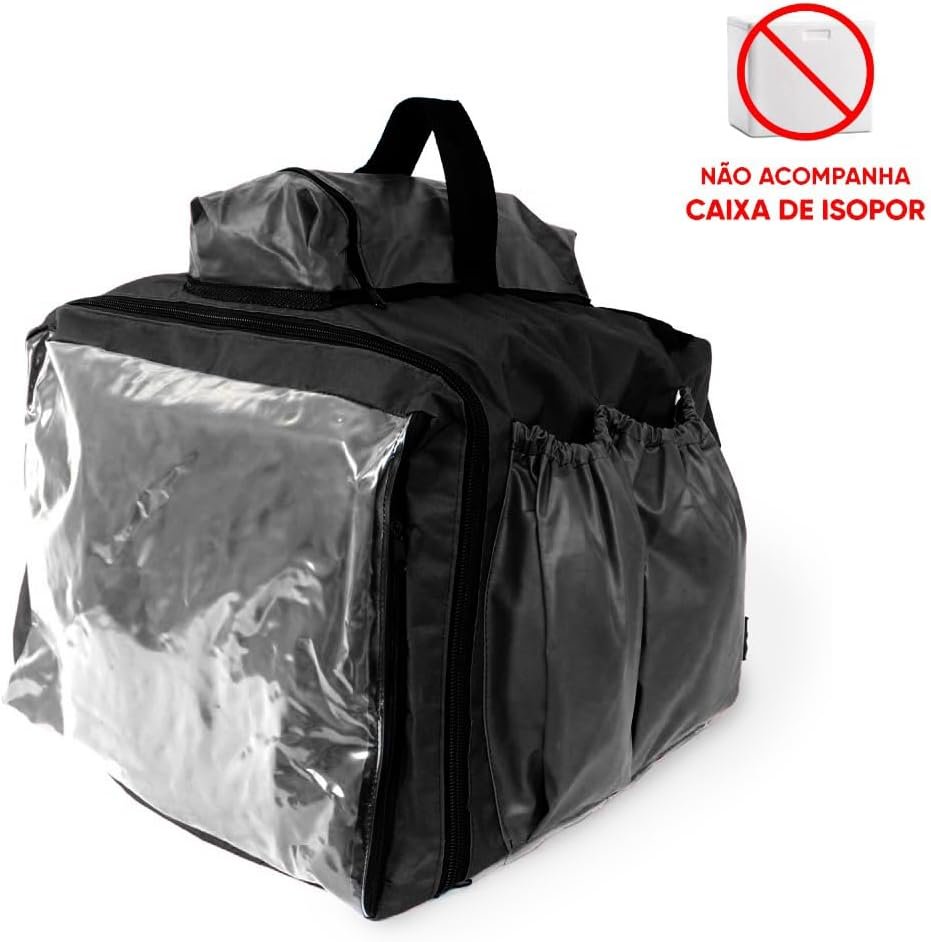 Capa Mochila Bag para Delivery e Entrega de Pizza Lanche Marmita sem Isopor 45 Litros para Motoboy Moto Aplicativo (Preto)