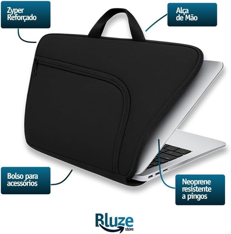 Capa Notebook 15.6 Polegadas Impermeável com Alça e Bolso Leve Reforçada Ideal para Viagem Trabalho e Faculdade Neoprene PremiumCapa Notebook 15.6 Polegadas Impermeável com Alça e Bolso Leve Reforçada Ideal para Viagem Trabalho e Faculdade Neoprene Premium