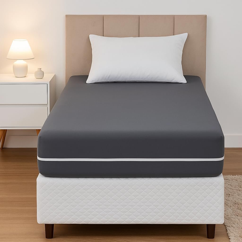 Capa P/Colchão Solteiro Com Zíper Malha Gel Luxuosa (2-CINZA)