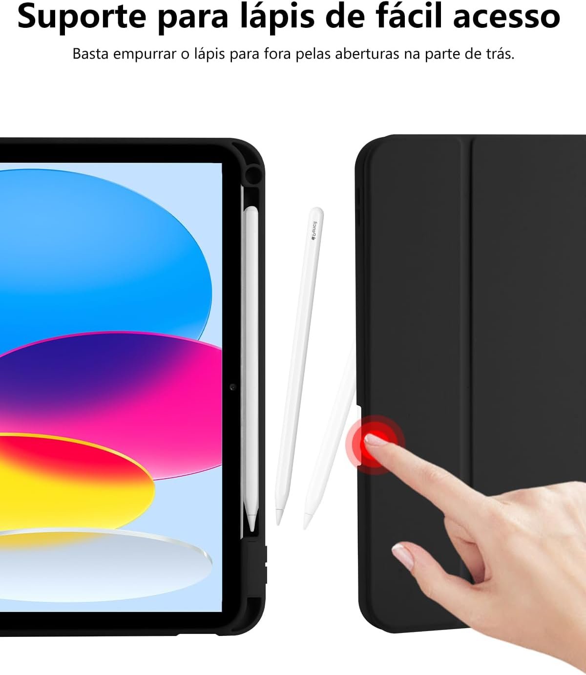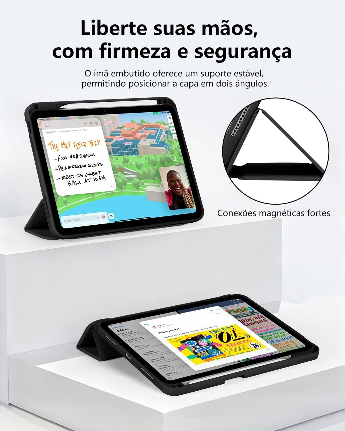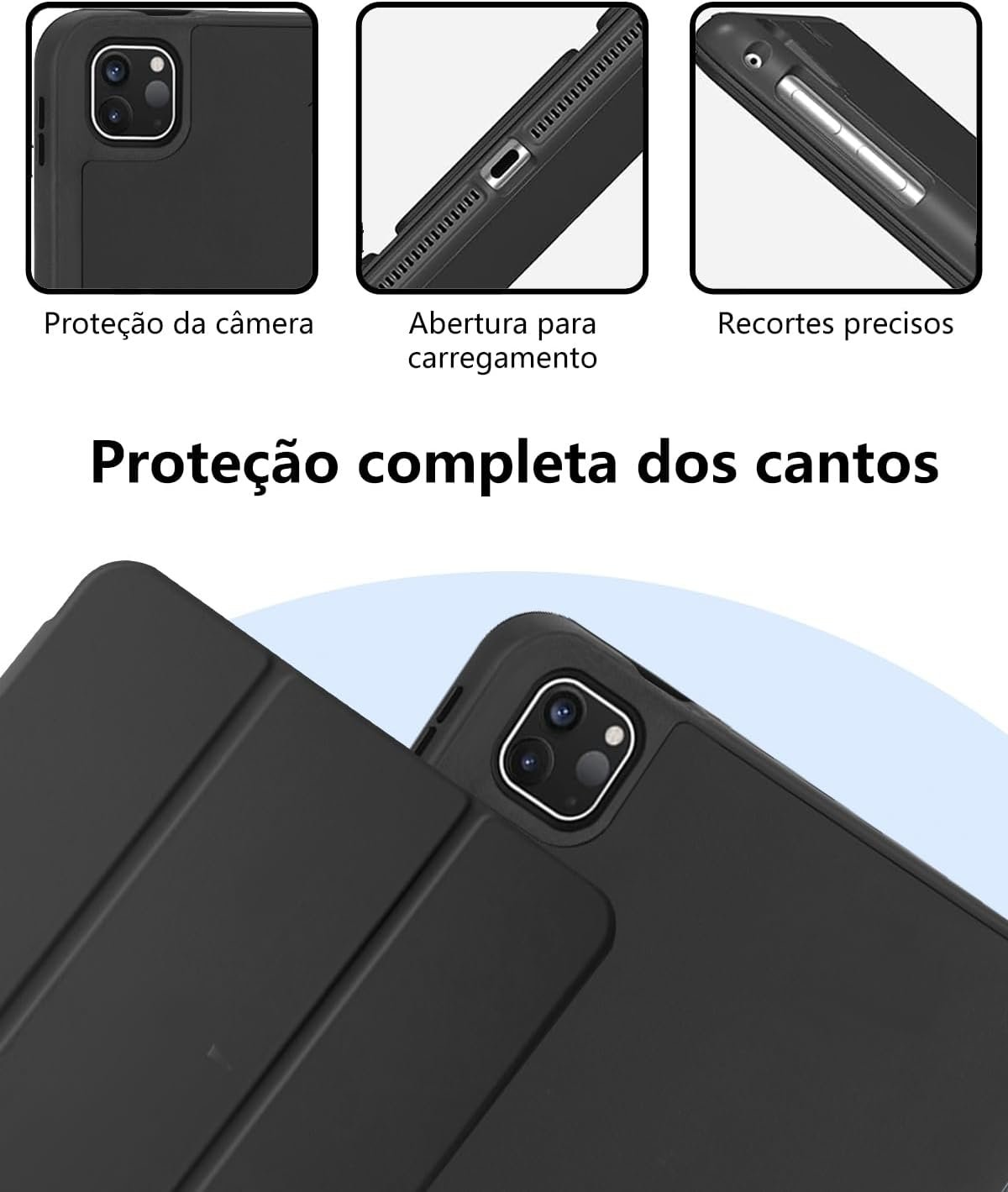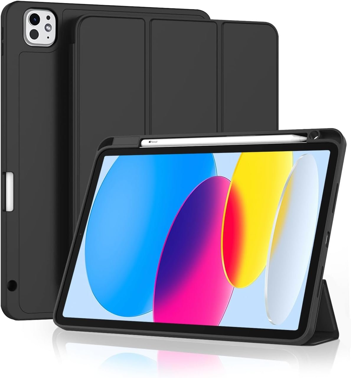 Capa para iPad Pro 13 Polegadas M5 / M4 (2025/2024) Case com Compartimento para Caneta Stylus Três Dobras Capinha Traseira em TPU Macio Função de Ativação/Suspensão Automática – Preto