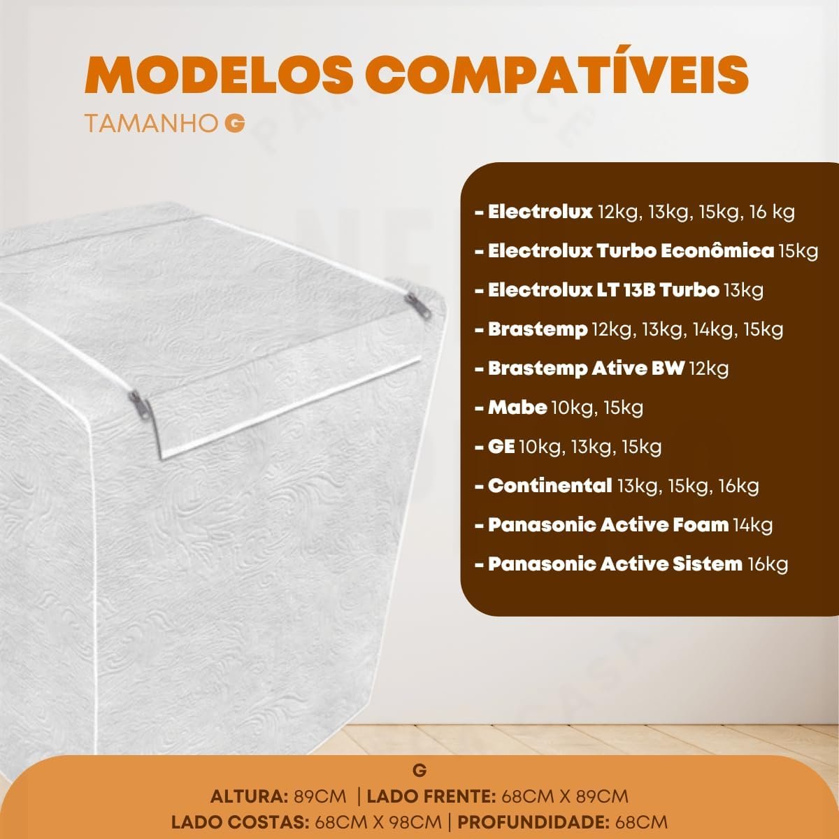 “Capa Para Maquina De Lavar Brastemp Eletrolux Consul 12Kg 13Kg 14Kg 15Kg 16Kg 17Kg Impermeável Flanelada Com Zíper Proteção UV Material Super Resistente E Perolizado de Alta Qualidade” (Branco)
