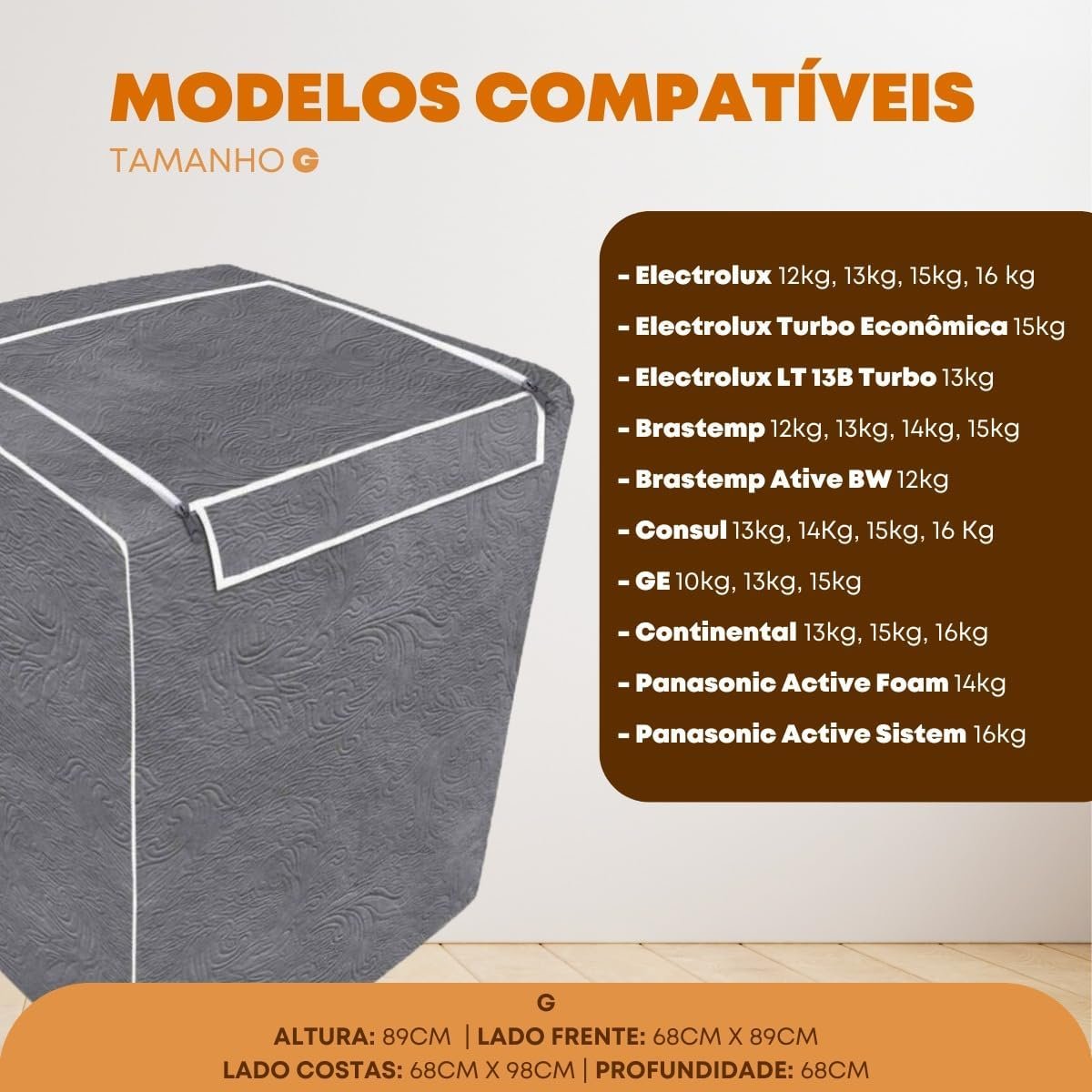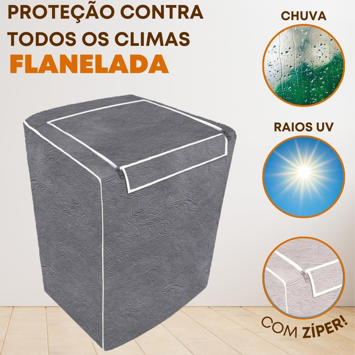“Capa Para Maquina De Lavar Brastemp Eletrolux Consul 12Kg 13Kg 14Kg 15Kg 16Kg 17Kg Impermeável Flanelada Com Zíper Proteção UV Material Super Resistente E Perolizado de Alta Qualidade” (Cinza)