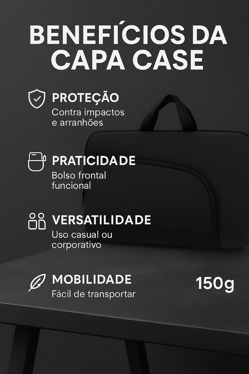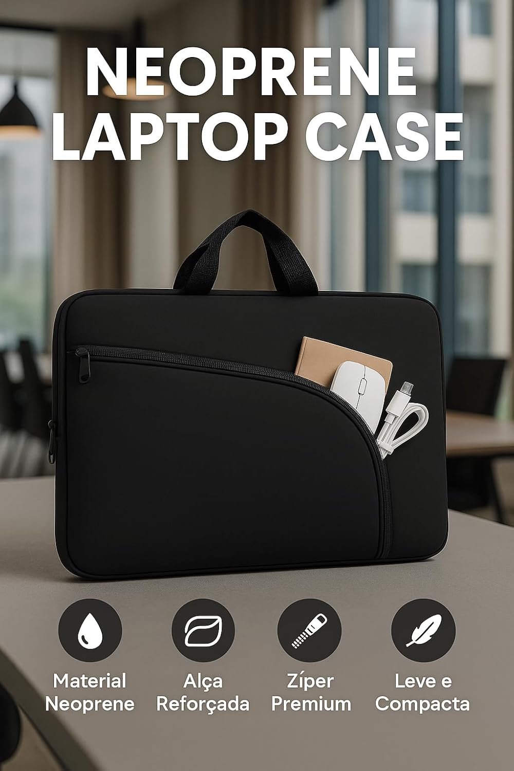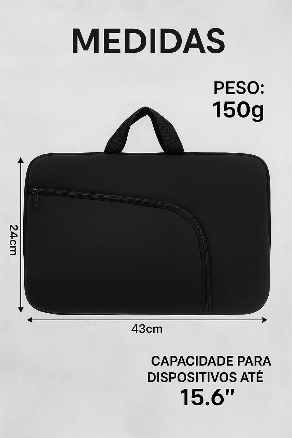 Capa para Notebook 15.6 Polegadas, Resistente à Água, Leve (150g), com Alça e Bolso Frontal, Case Protetora Slim para Trabalho, Faculdade e Viagem, Alça Reforçada, Neoprene – Qualidade Premium
