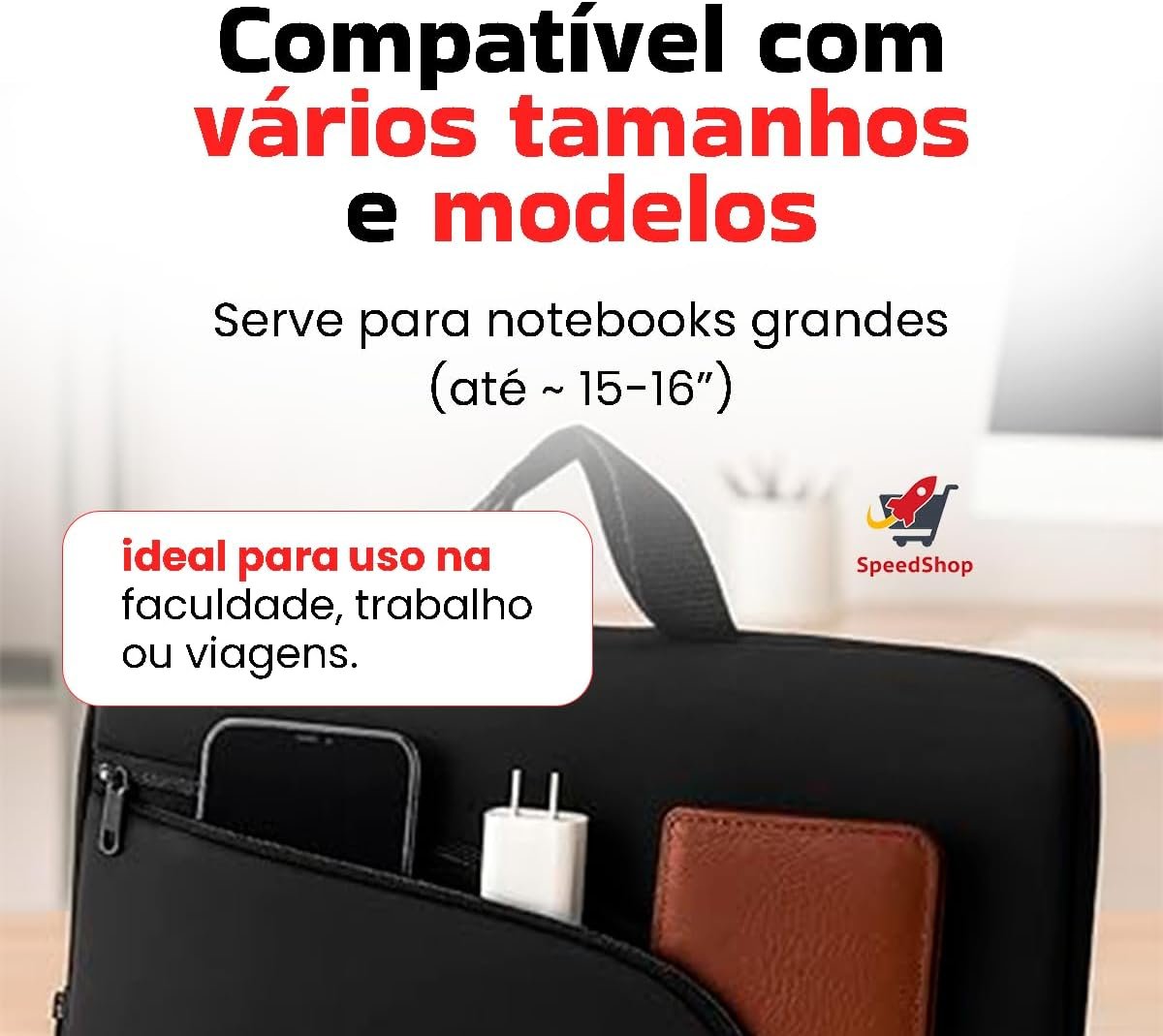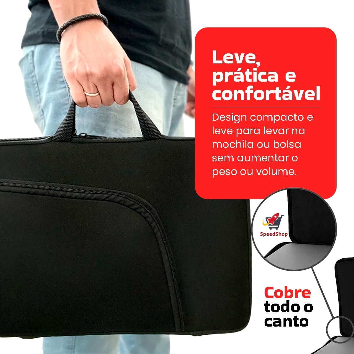 Descrição: A Capa para Notebook 15.6 Polegadas é o acessório ideal para proteger seu laptop de forma elegante e funcional. Feita em neoprene de alta qualidade, essa capa é resistente à água, leve e possui alça reforçada para facilitar o transporte. Com um bolso frontal para guardar seus acessórios, é perfeita para uso no trabalho, na faculdade e em viagens. Garanta já essa proteção slim e durável para seu notebook!
