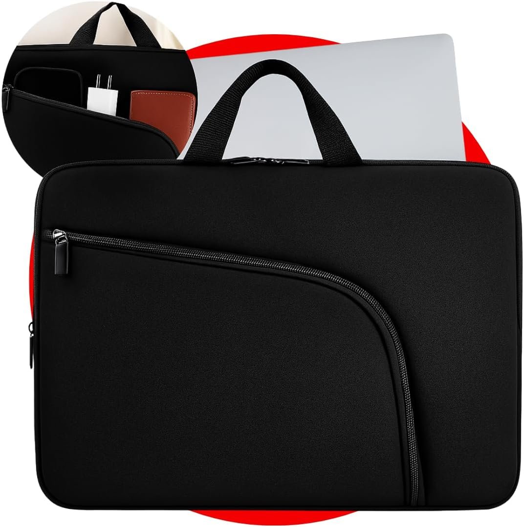 Título do Produto: Capa para Notebook 15.6 Polegadas, Resistente à Água, Leve (150g), com Alça e Bolso Frontal, Case Protetora Slim para Trabalho, Faculdade e Viagem, Alça Reforçada, Neoprene – Qualidade Premium