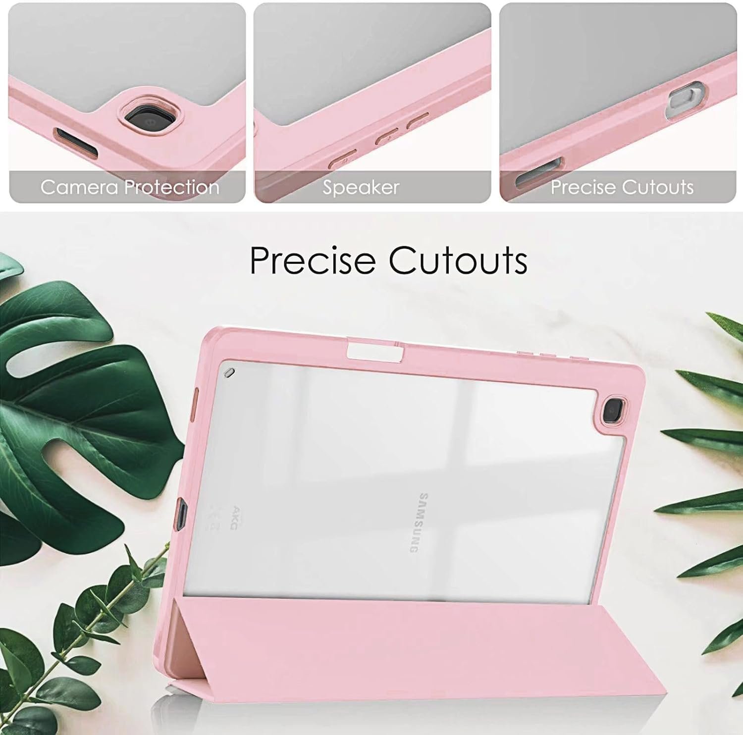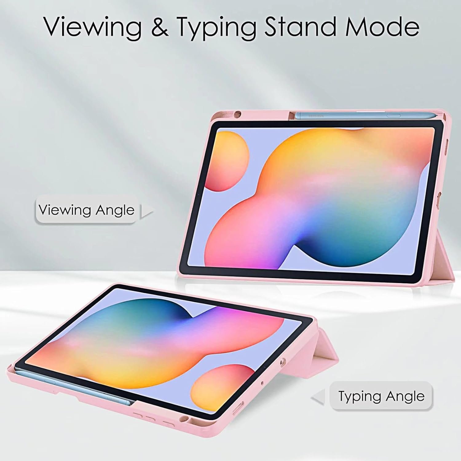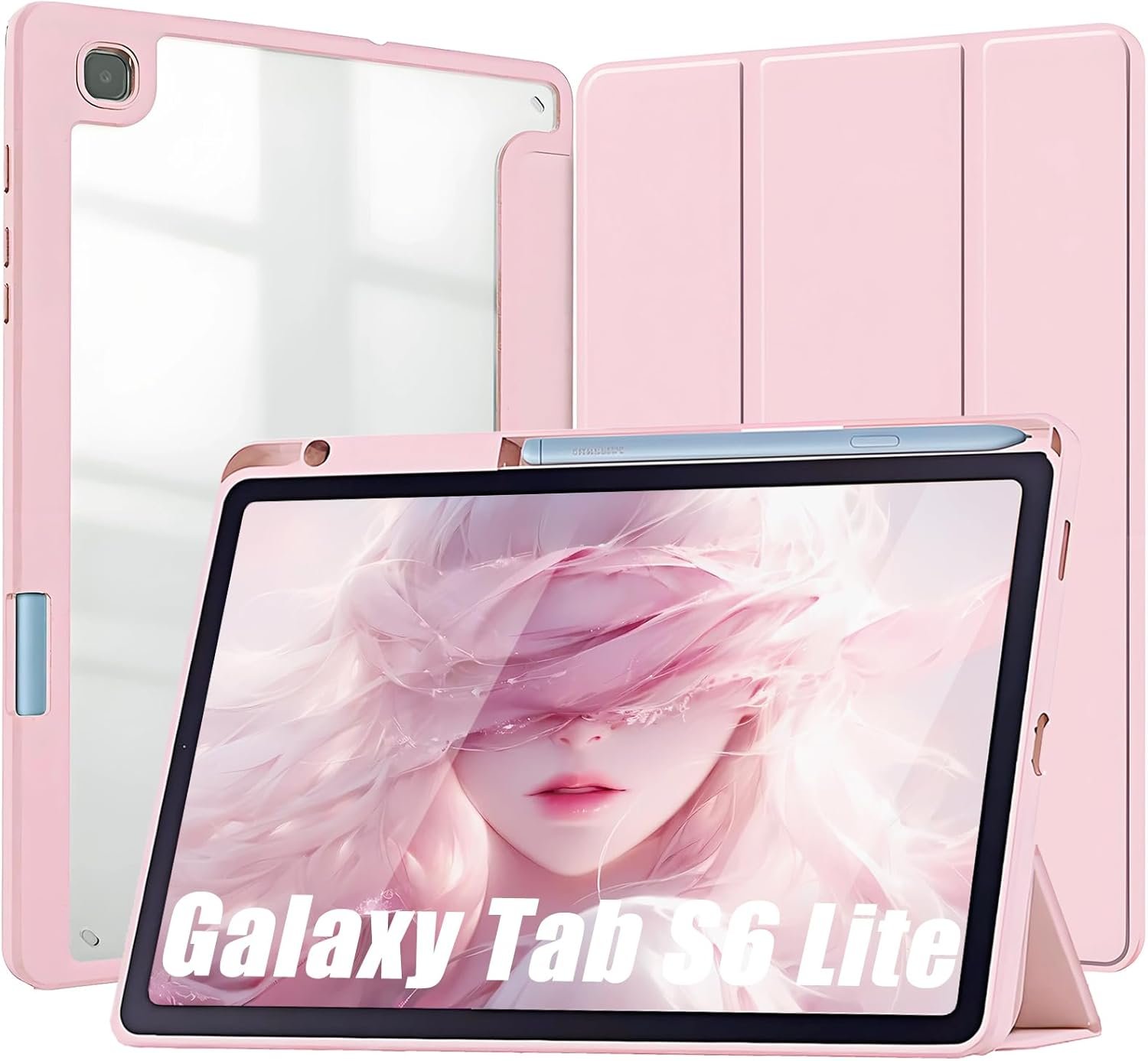 Capa para Samsung Galaxy Tab S6 Lite 10.4″ 2024 e 2022 e 2020. Capinha Protetora Fina capa Traseira Transparente com Suporte para Lápis Anti-Impacto Auto Sleep Tampa Magnética – Rosa