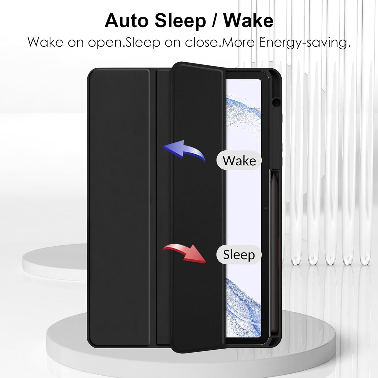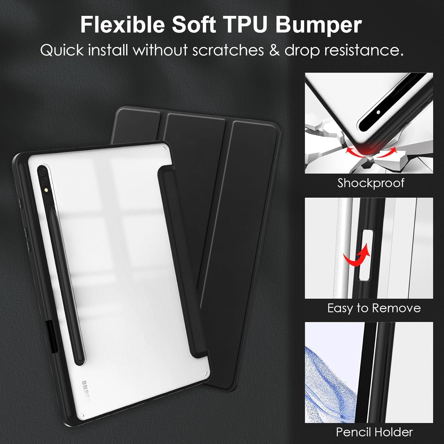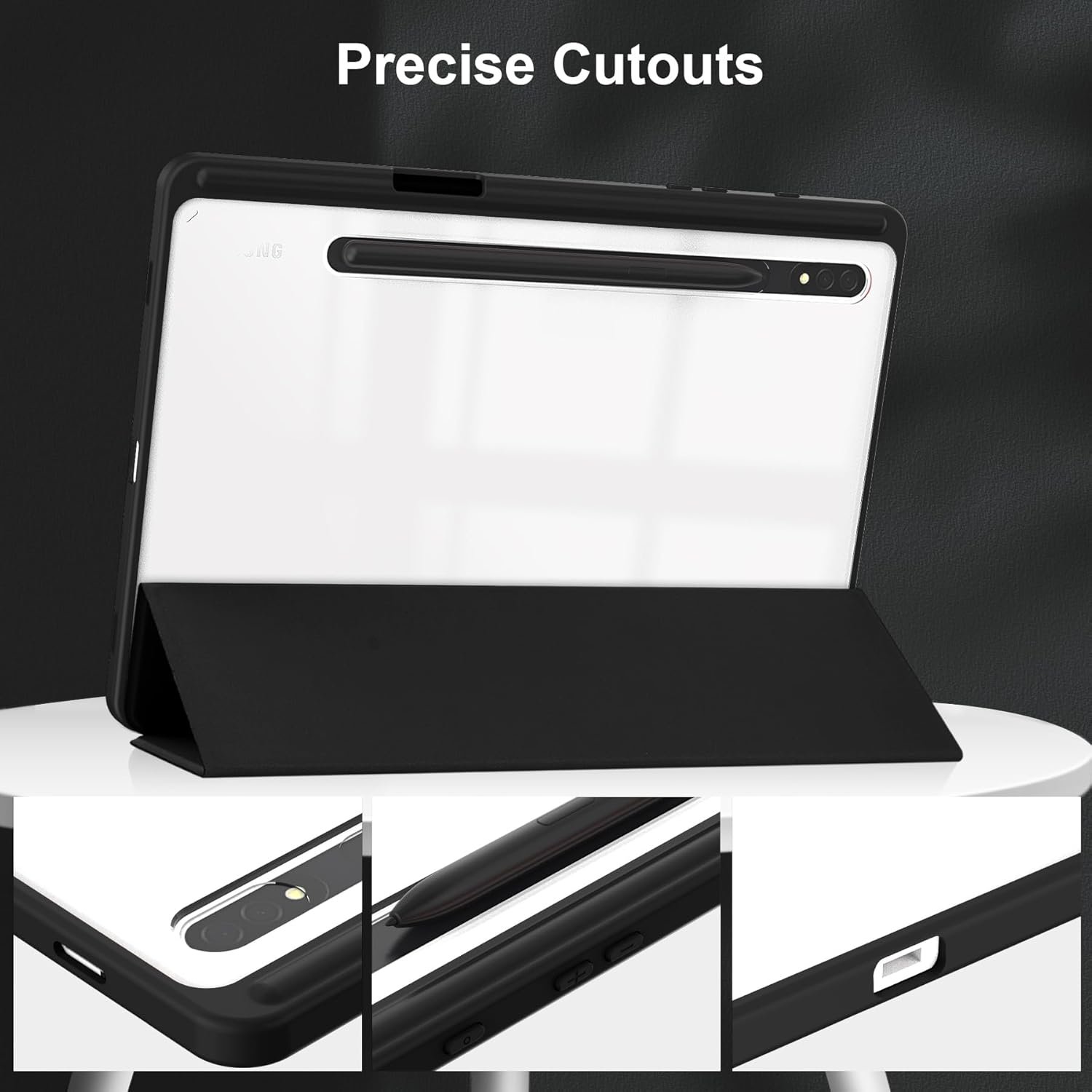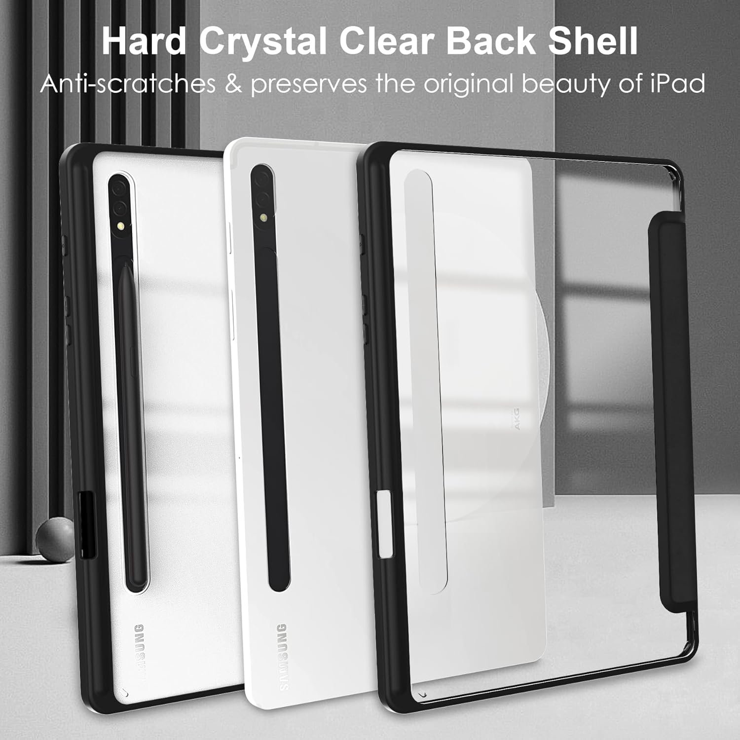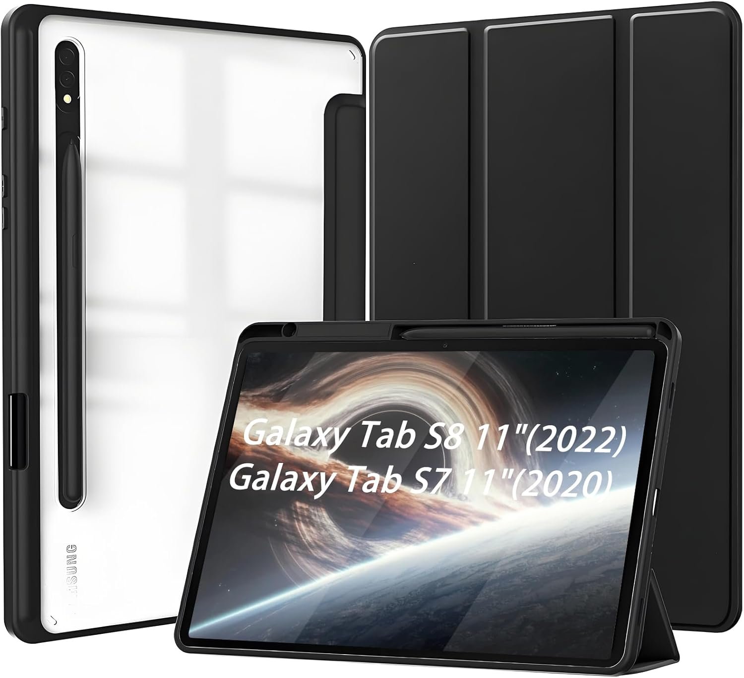 Capa para Samsung Galaxy Tab S8 e S7 11 Polegadas Capinha Protetora Fina Capa Traseira Transparente Proteção com Suporte para Lápis Anti-Impacto Auto Sleep Tampa Magnética – Negro