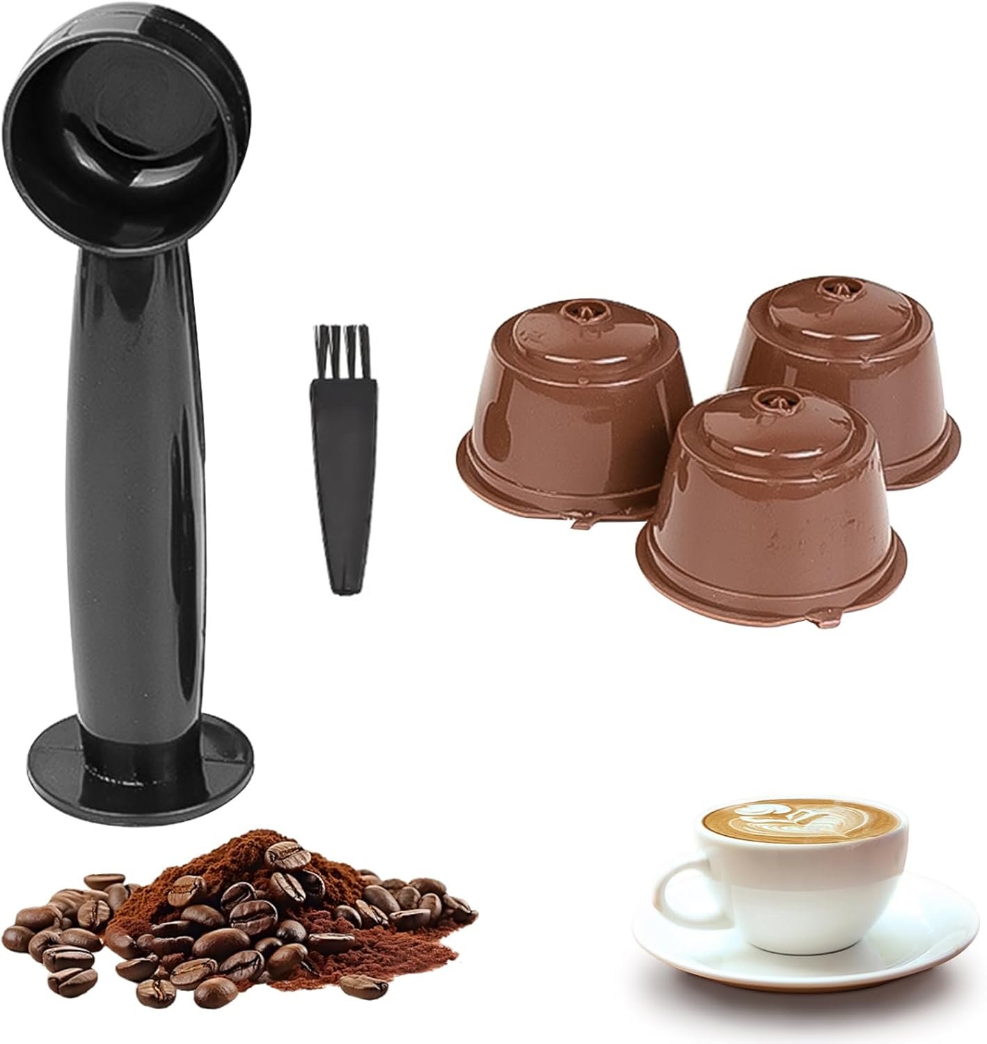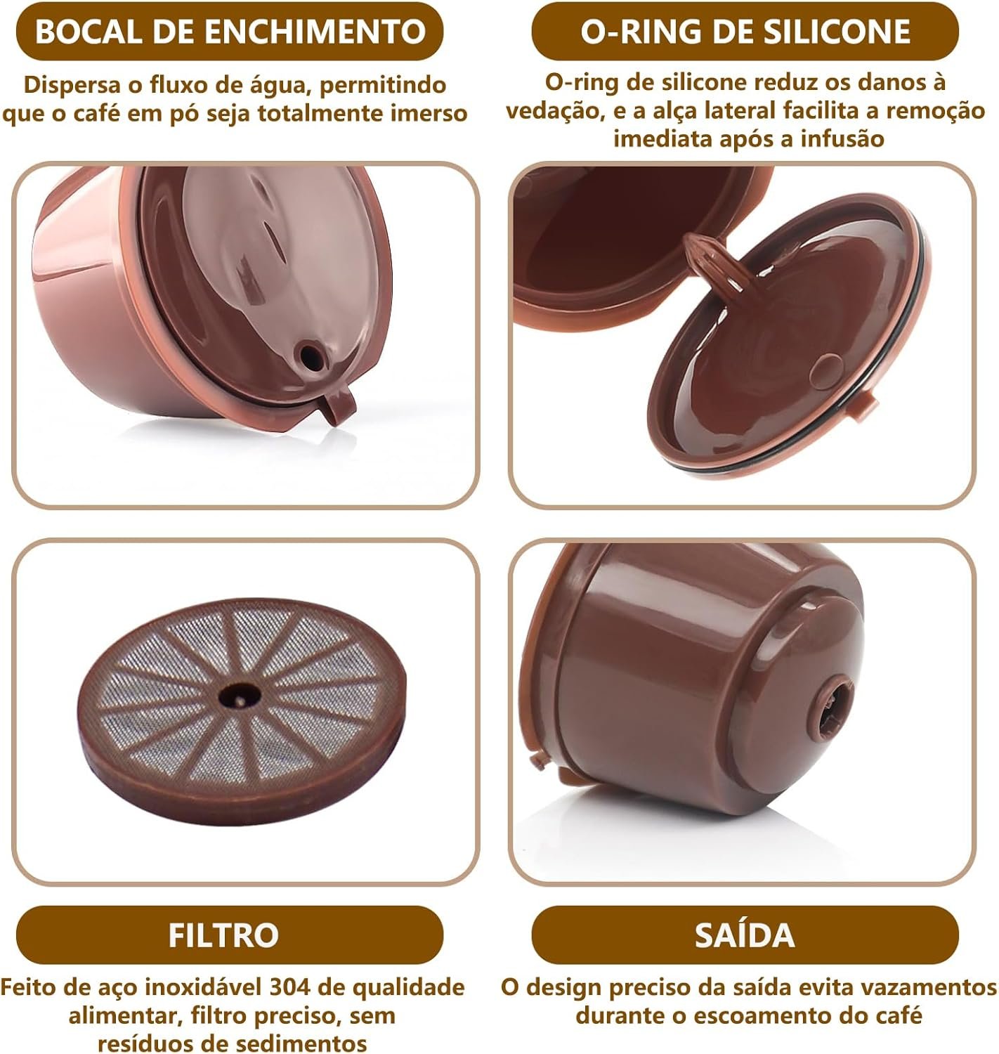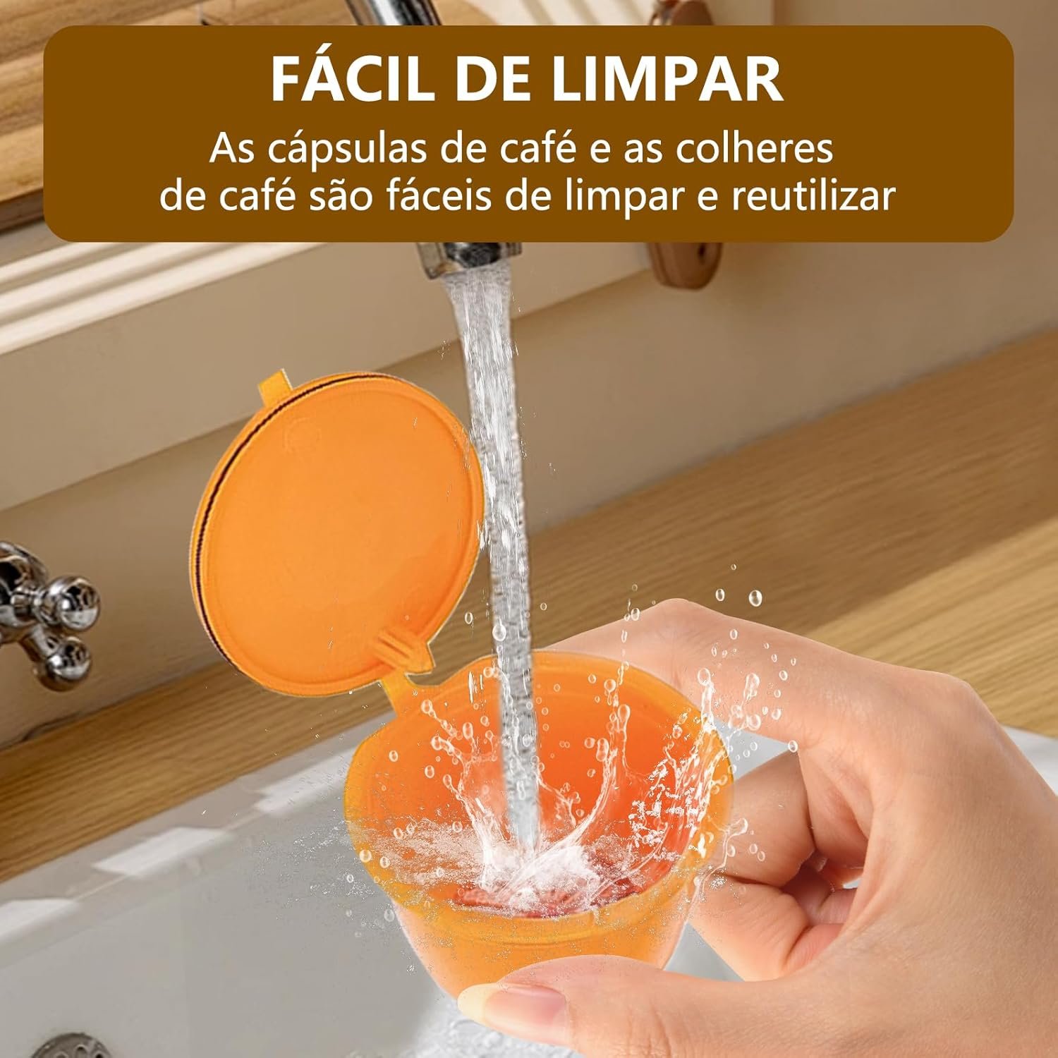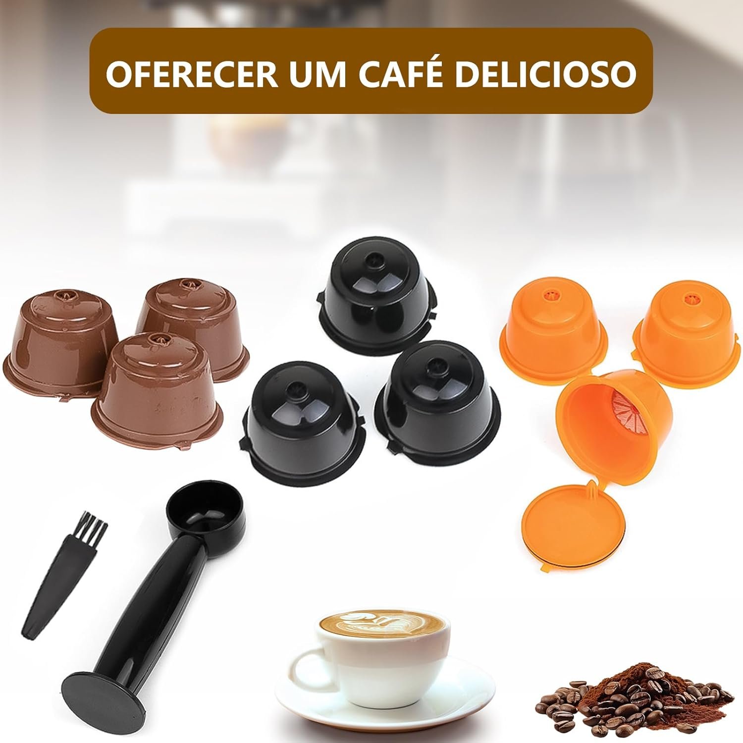 Cápsula Recarregável Compatível com Máquina DolceGusto + Colher Dupla Função para Pó de Café Laranja (Café)
