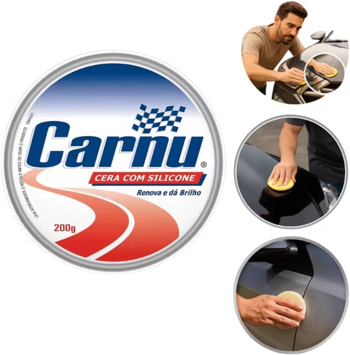 Carnu Cera Automotiva com Silicone, Renova e Dá Brilho, Proteção e Conservação da Pintura, 200g