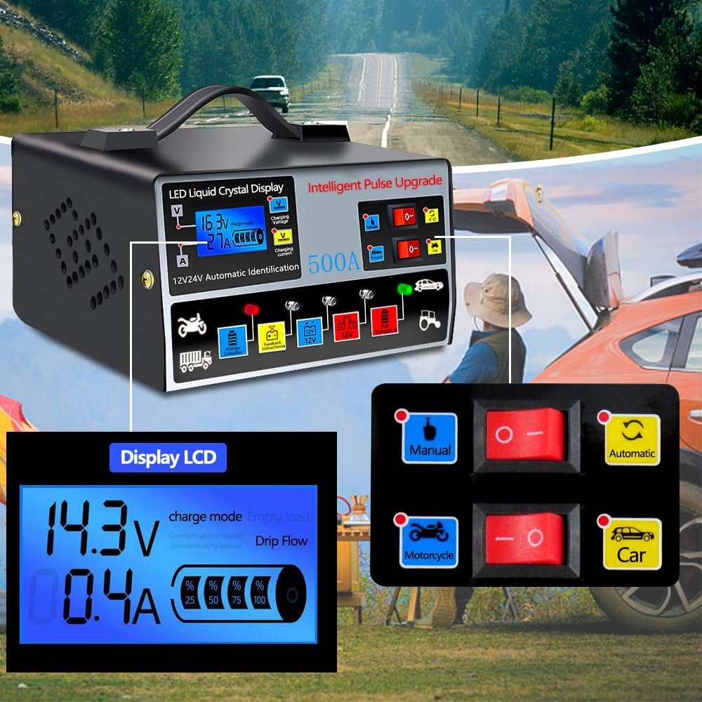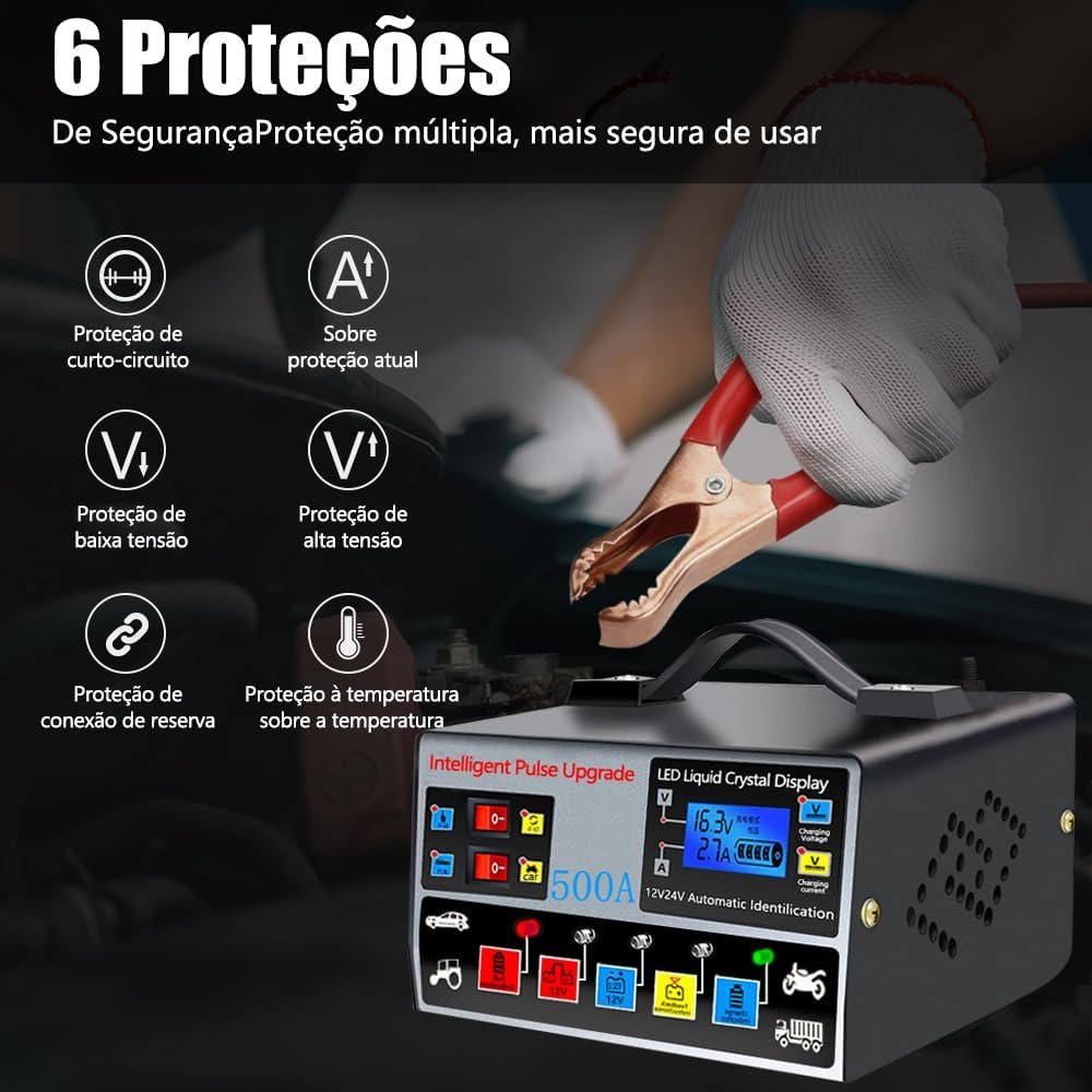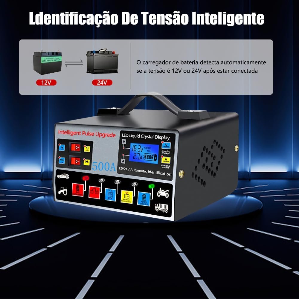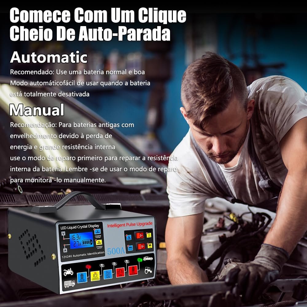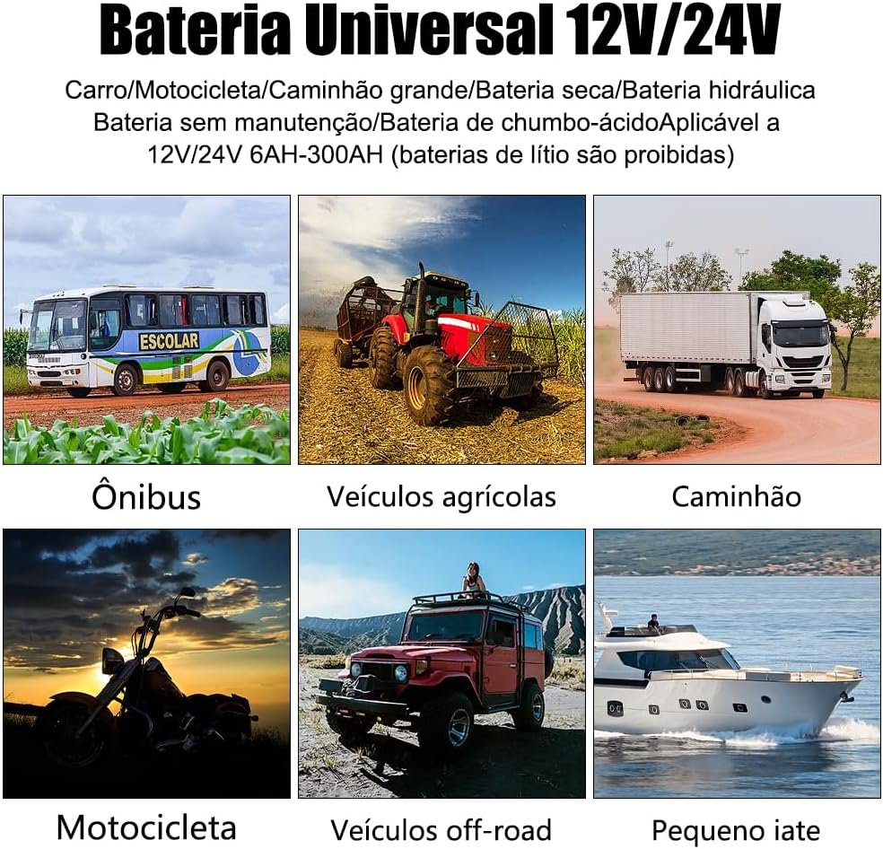 Carregador de Bateria Automotivo, Carregador de Bateria de Moto com Visor, 220v