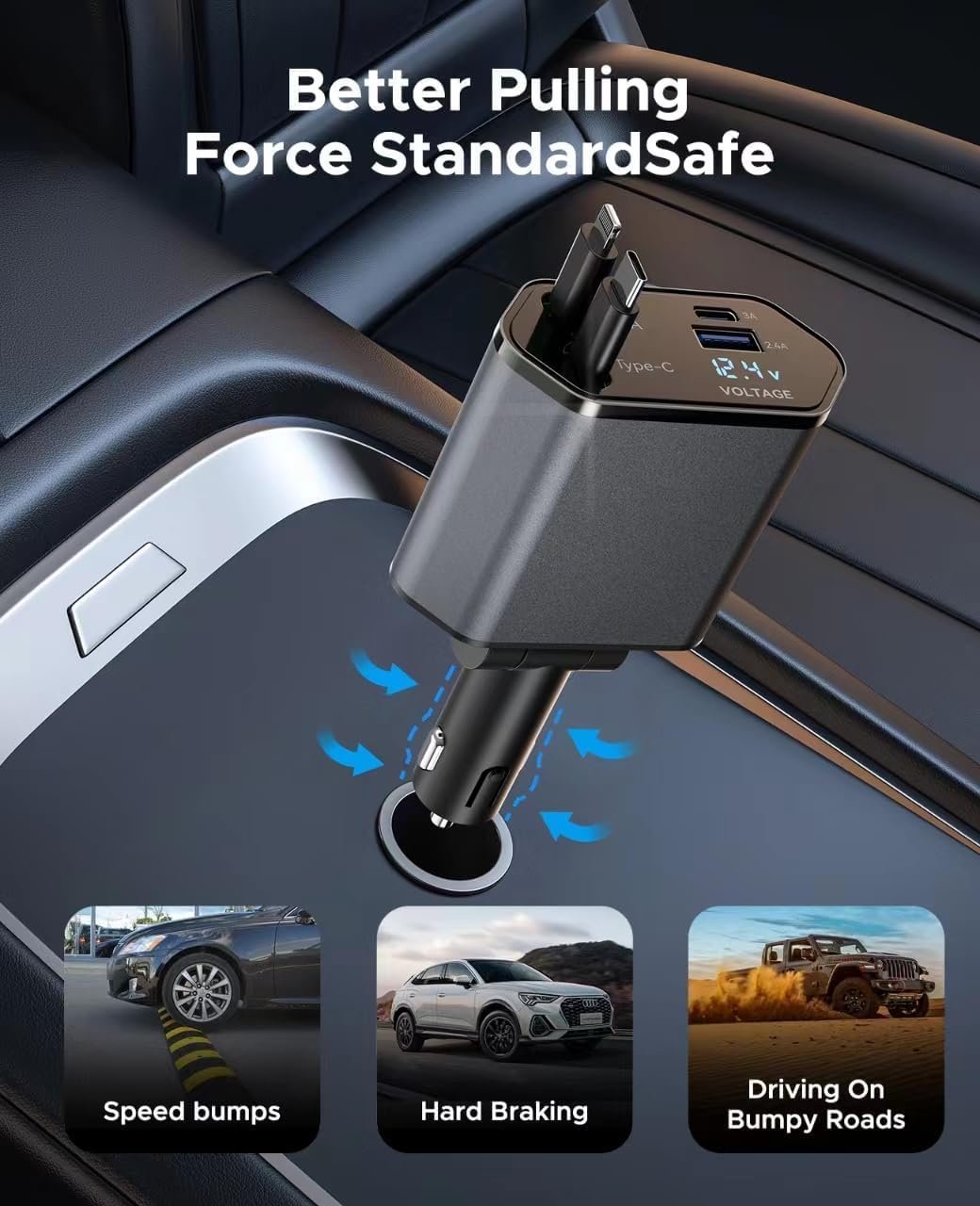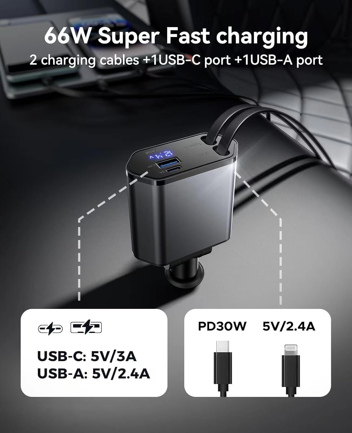 Carregador de carro retrátil 4 em 1 adaptador de carregador de telefone rápido para carro, cabos retráteis e 2 portas USB, carregador de carro compatível com iPhone 16/15/14/13/12/11 Pro max, Galaxy,Carregador de carro retrátil 4 em 1 adaptador de carregador de telefone rápido para carro, cabos retráteis e 2 portas USB, carregador de carro compatível com iPhone 16/15/14/13/12/11 Pro max, Galaxy,