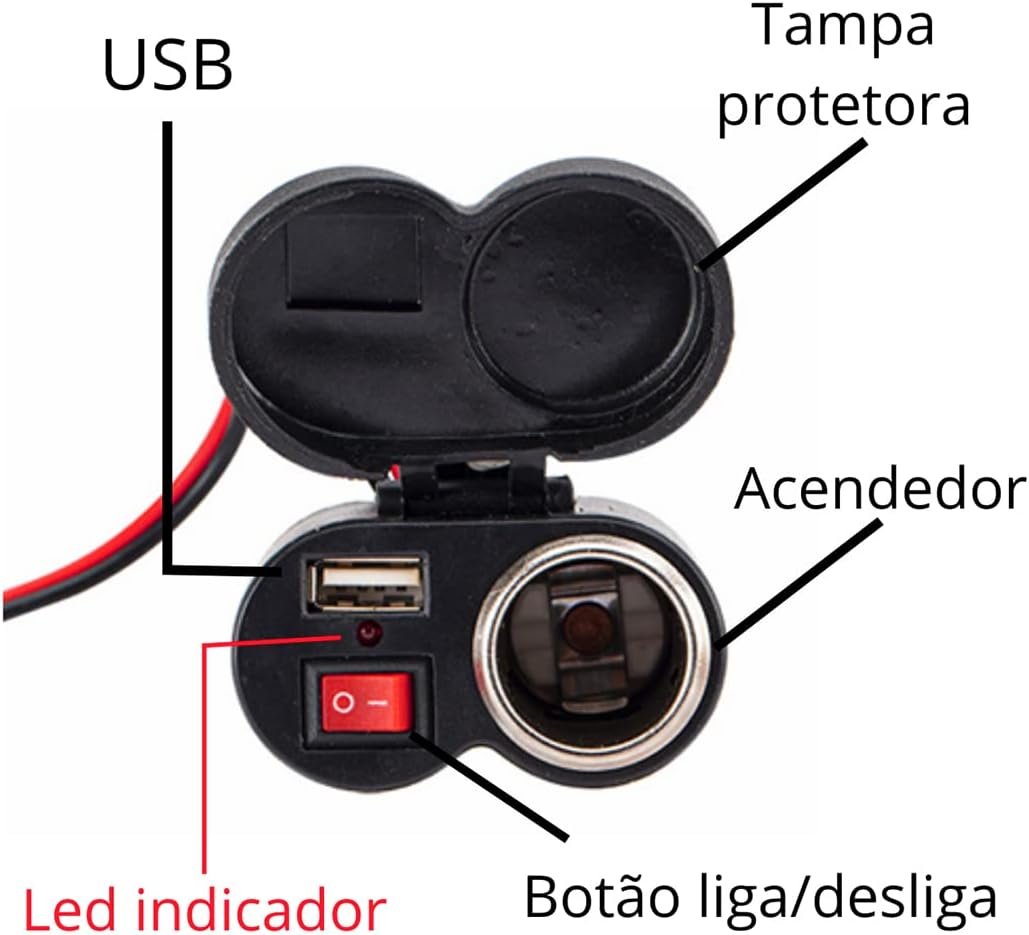 Carregador Para Moto Celular GPS Tomada USB 2.0 Adaptador Acendedor Guidão De Motocicleta Bicicleta Elétrica Automático Entregadores Prova De Água PREMIUM ONYK