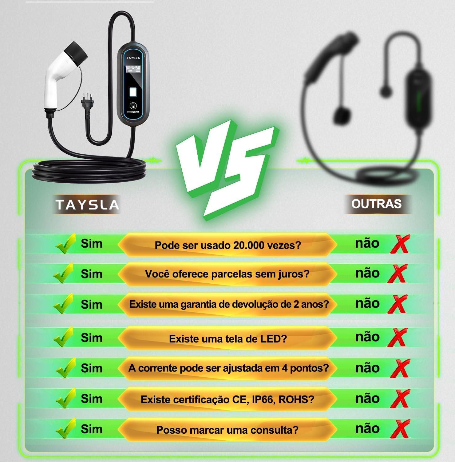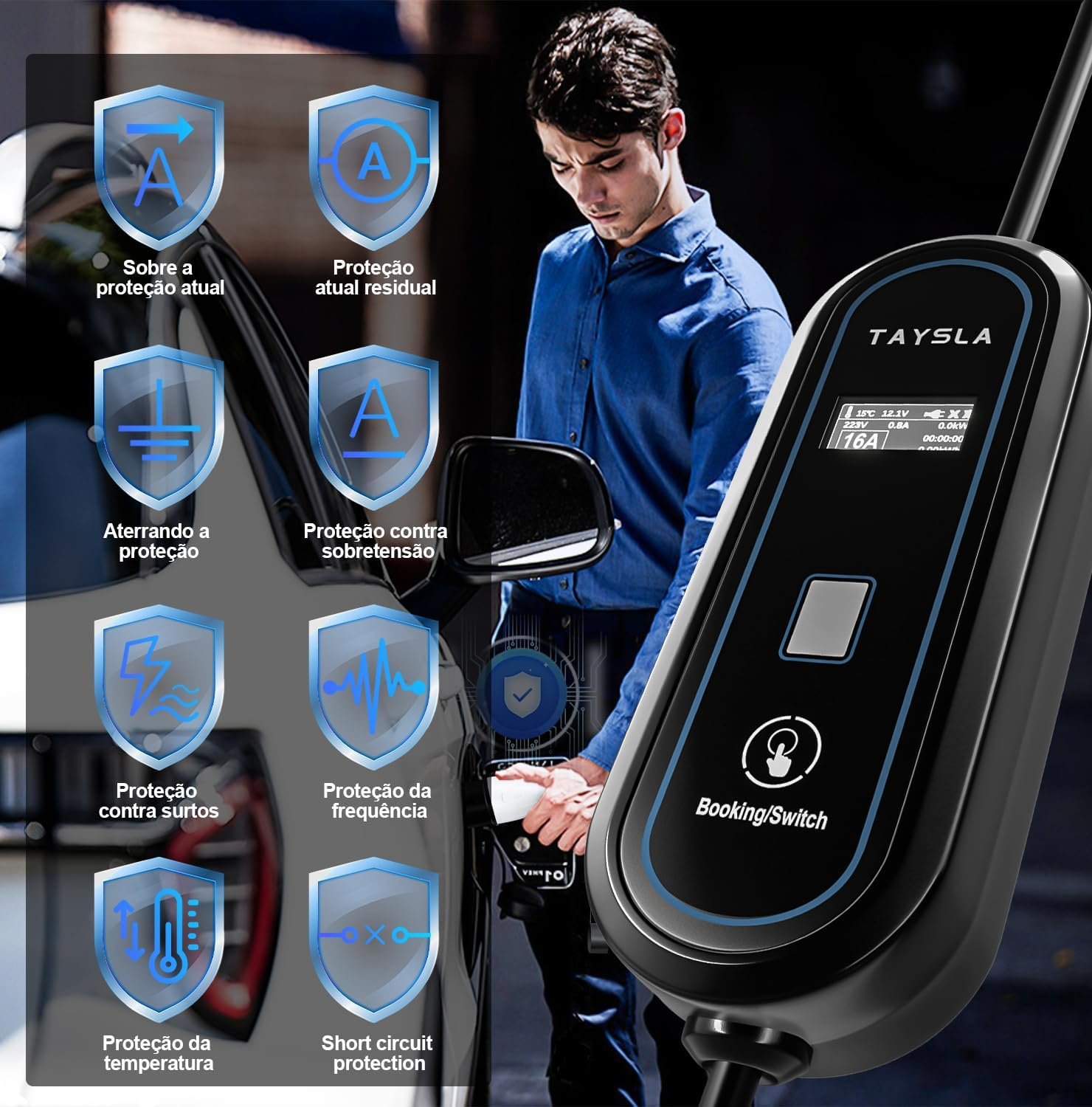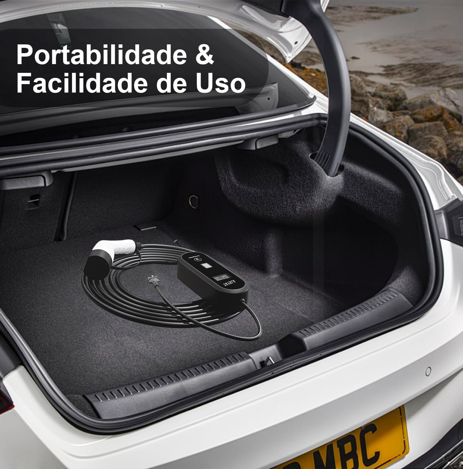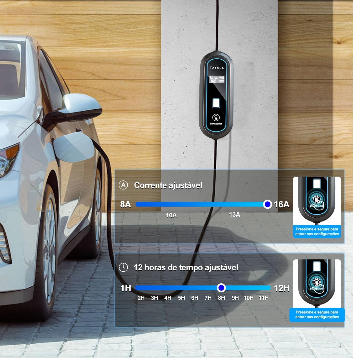 Carregador Portátil Carro Eletrico EV 3,5KW 8A 10A 13A 16A Tipo 2 Cabo De 3.5M Carregamento Elétrico Com Tela LED WallBox Plug BR Para Carro BYD Nissan Volvo BIVOLT Phantom