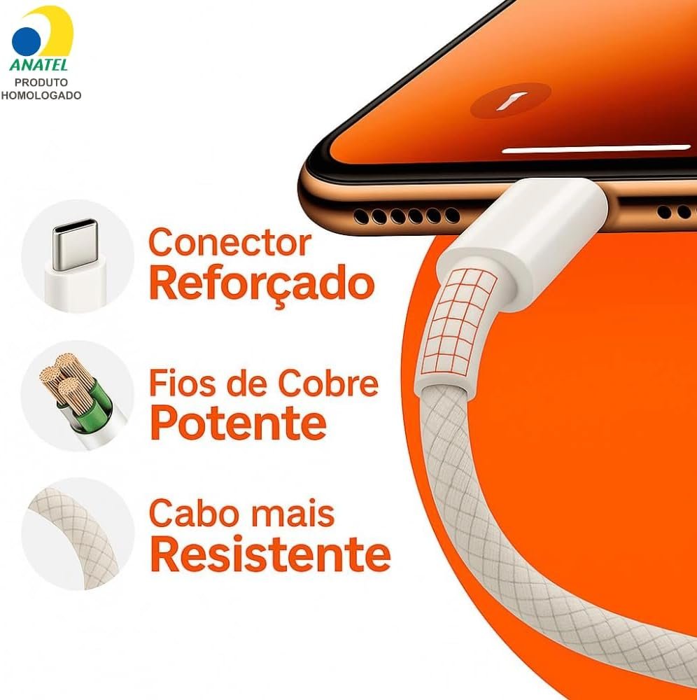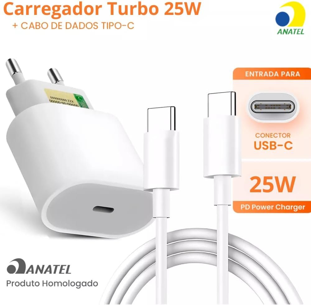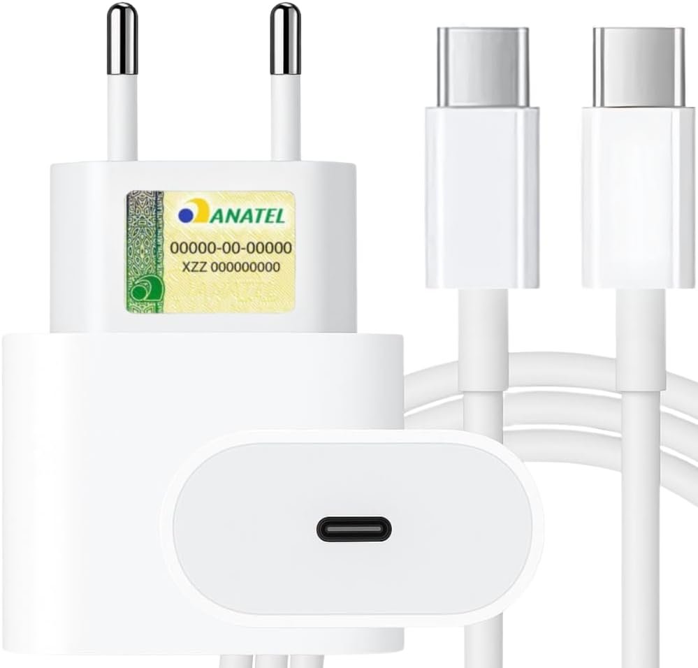 Carregador Turbo Tipo C Compatível com iPhone 15, 15 pro, 15 Pro Max, iPhone 16, 16 pro, 16 pro Max, Samsung Galaxy, IOS/Android Turbo + Cabo USB-C Ultra Rápido de 1M PremiumCarregador Turbo Tipo C Compatível com iPhone 15, 15 pro, 15 Pro Max, iPhone 16, 16 pro, 16 pro Max, Samsung Galaxy, IOS/Android Turbo + Cabo USB-C Ultra Rápido de 1M Premium