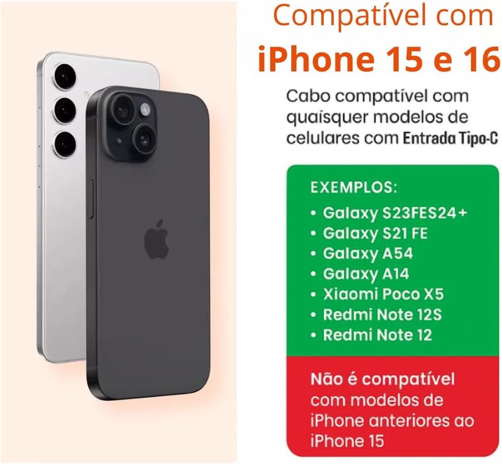 Seja o primeiro a avaliar “Carregador Turbo Tipo C Compatível com iPhone 15, 15 pro, 15 Pro Max, iPhone 16, 16 pro, 16 pro Max, Samsung Galaxy, IOS/Android Turbo + Cabo USB-C Ultra Rápido de 1M Premium”