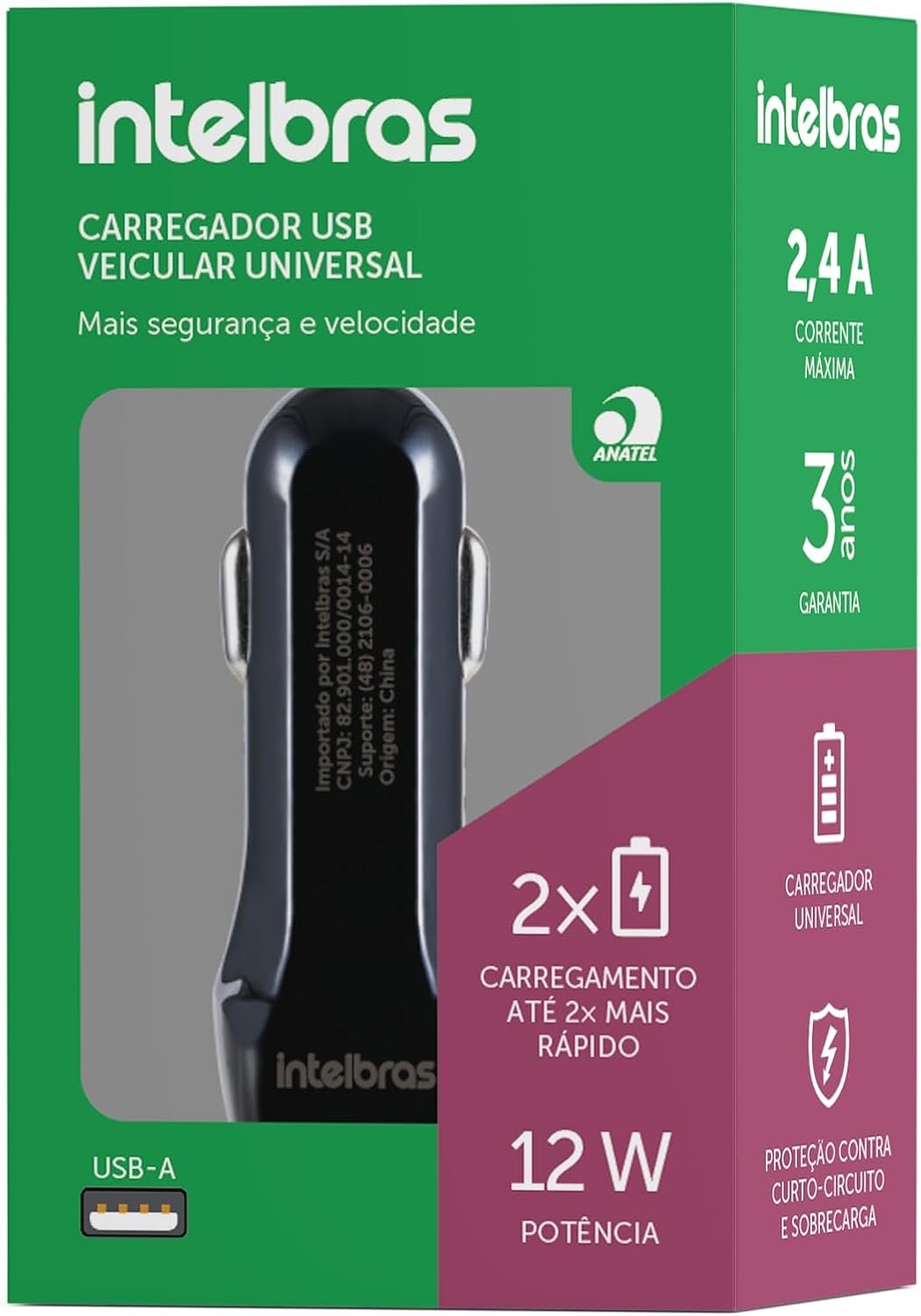 Carregador Universal Veicular ECV2 Fast Preto Intelbras
