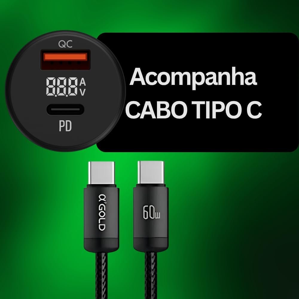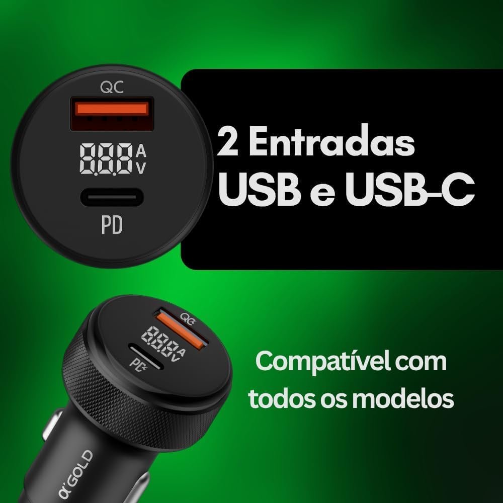 Carregador Veicular Turbo 60W com 2 Portas – USB 3.0 + Tipo C – Carregamento Rápido 9.1A – Compatível com Celulares, Tablets e GPS – Modelo Premium (Cinza)Carregador Veicular Turbo 60W com 2 Portas – USB 3.0 + Tipo C – Carregamento Rápido 9.1A – Compatível com Celulares, Tablets e GPS – Modelo Premium (Cinza)