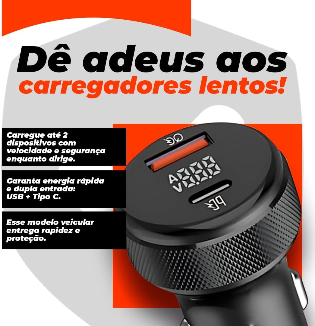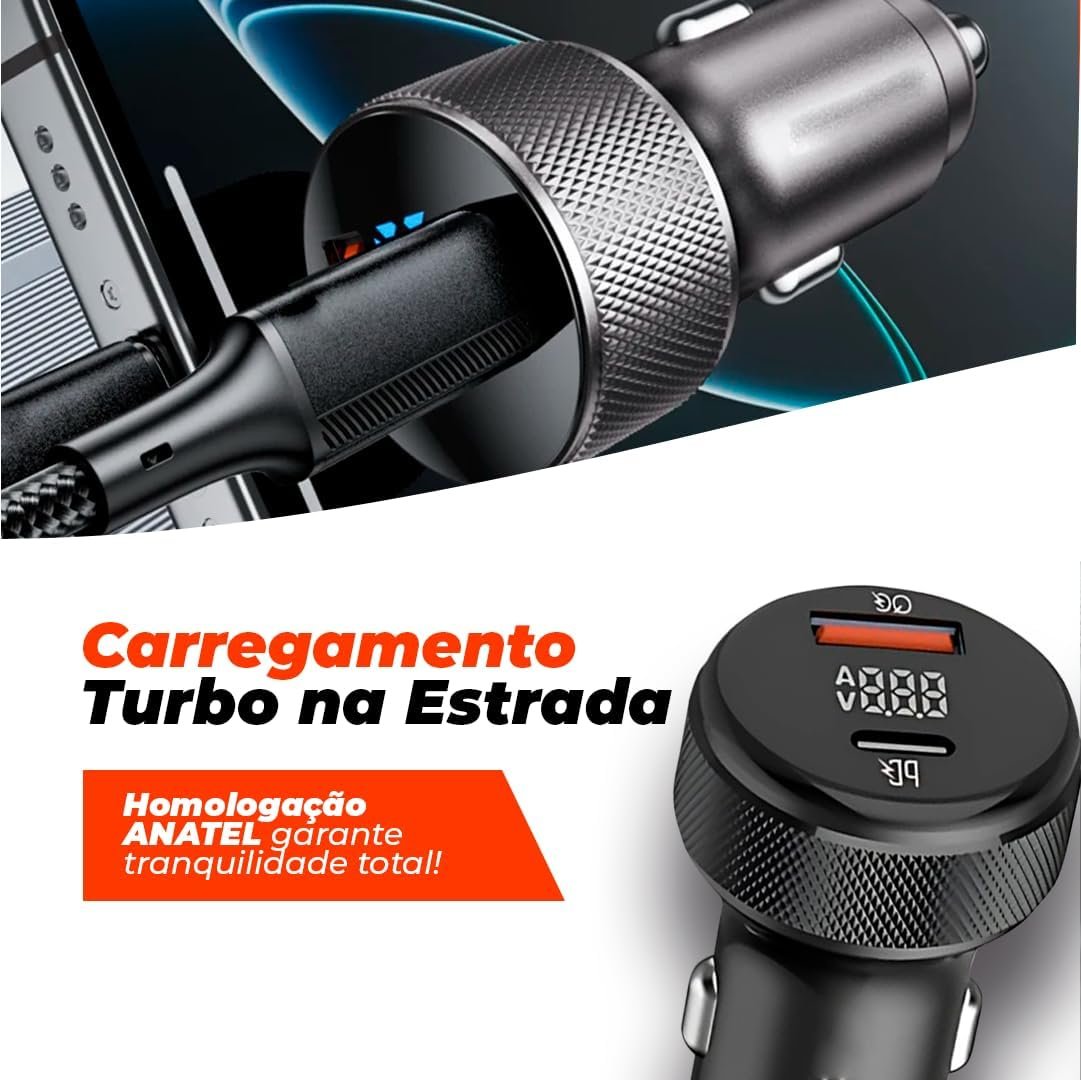 Carregador Veicular Universal Rápido Turbo Power 60W – Premium
